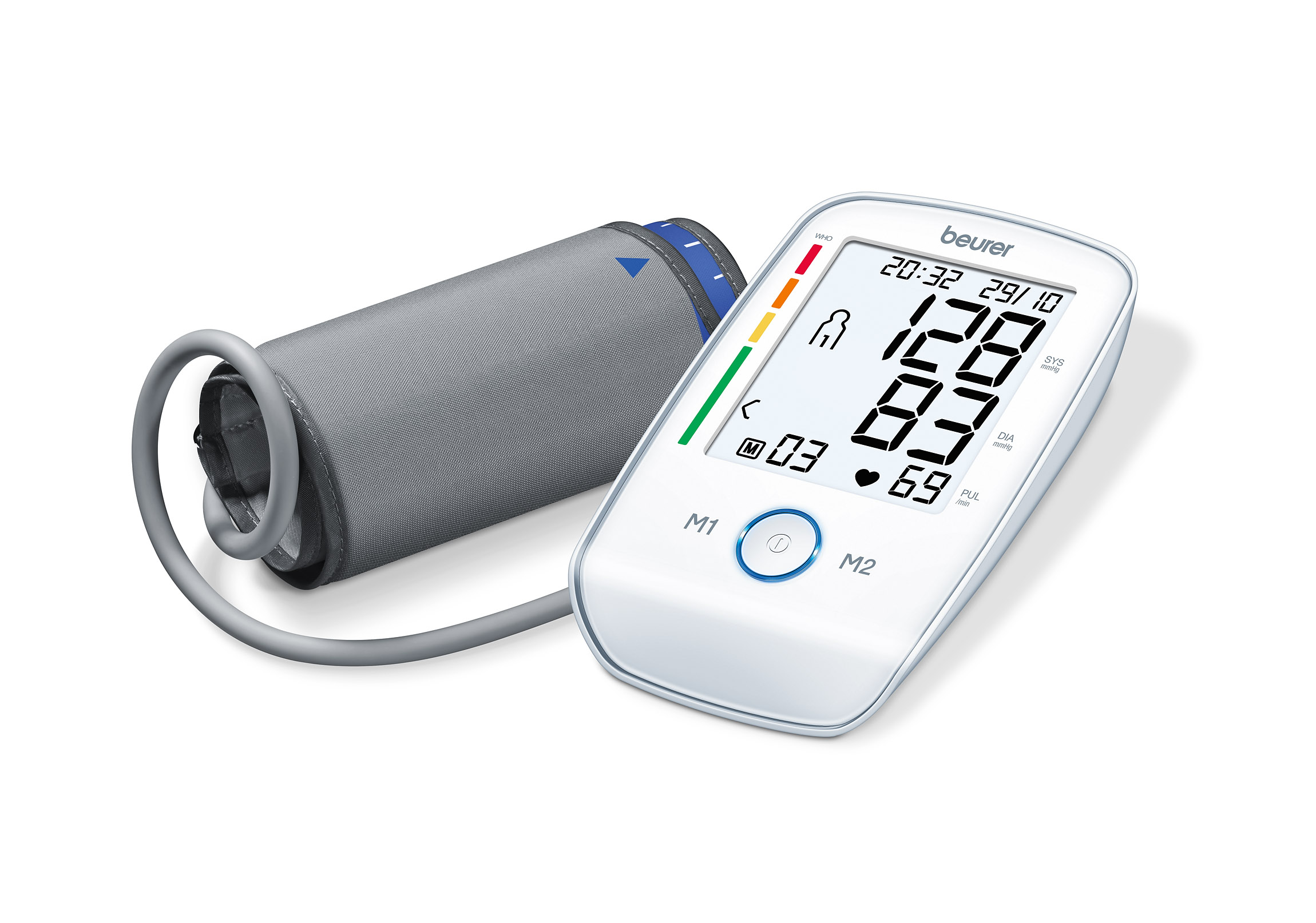 Beurer BM45 on täysin automaattinen verenpainemittari, joka mittaa ylä- ja alapaineen sekä sykkeen olkavarresta. Verenpainemittari ilmoittaa mittaustuloksen myös suhteutettuna maailman terveysjärjestön WHO:n suosituksiin.