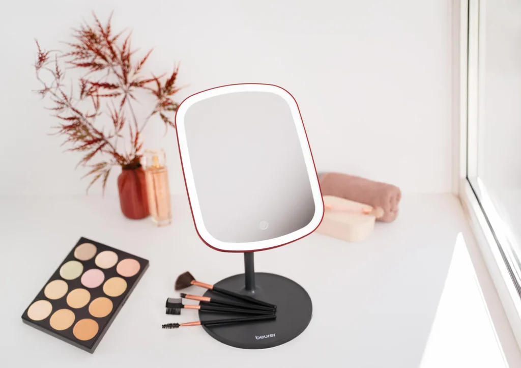 Beurerin BS 47 -valaistu meikkipeili tarjoaa kolme eri valaistusvaihtoehtoa: lämmin, viileä ja luonnollinen valo, joten se sopii käytettäväksi kaikissa tilanteissa. Käytännöllisen magneettipidikkeen ansiosta peilin asentoa on helppo muuttaa tai peili irrottaa käytettäväksi käsipeilinä. Peilin pinnassa oleva integroitu kosketusanturi takaa myös helpon käytön.