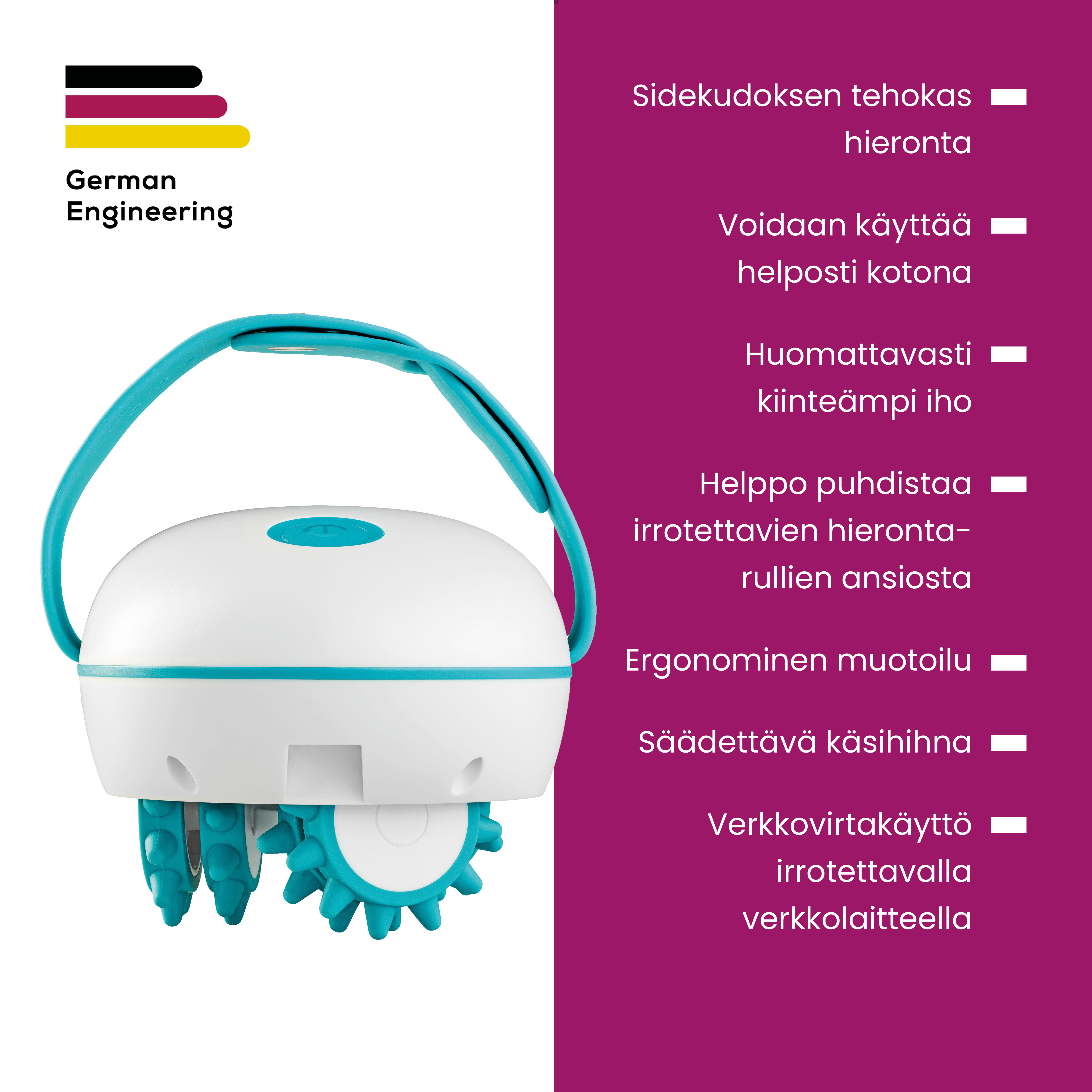 - Sidekudoksen tehokas hieronta - edistää verenkiertoa ihokerroksissa