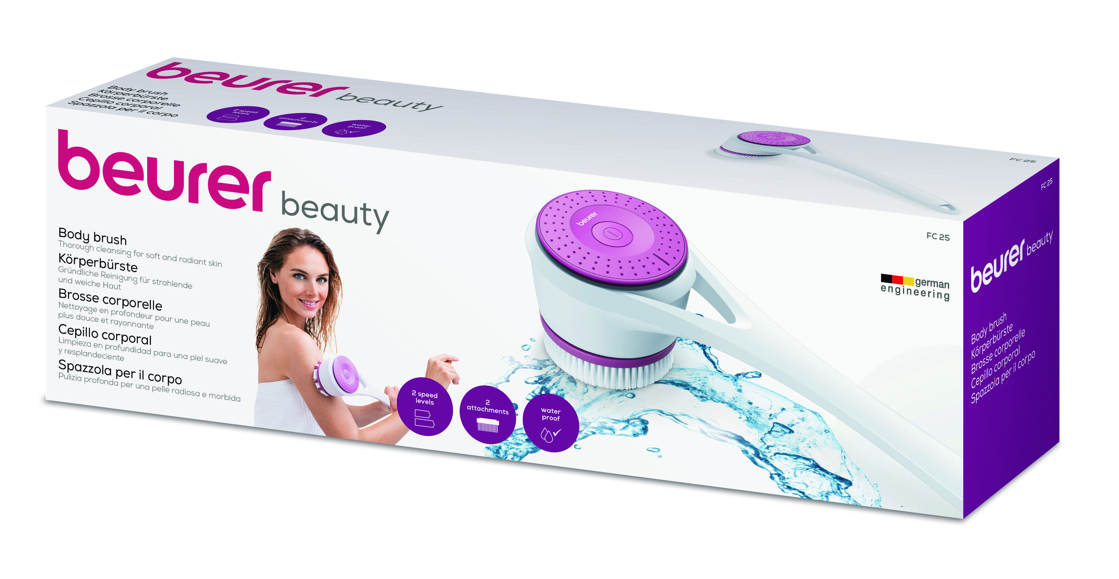 Sähkökäyttöinen vedenkestävä harja sopii optimaalisesti vartalon hellävaraiseen ja perusteelliseen puhdistukseen. Ergonominen muoto tekee käytöstä erityisen mukavan ja kahva tekee selän puhdistamisesta erityisen helppoa. Huomattavasti pehmeämpään ihoon.