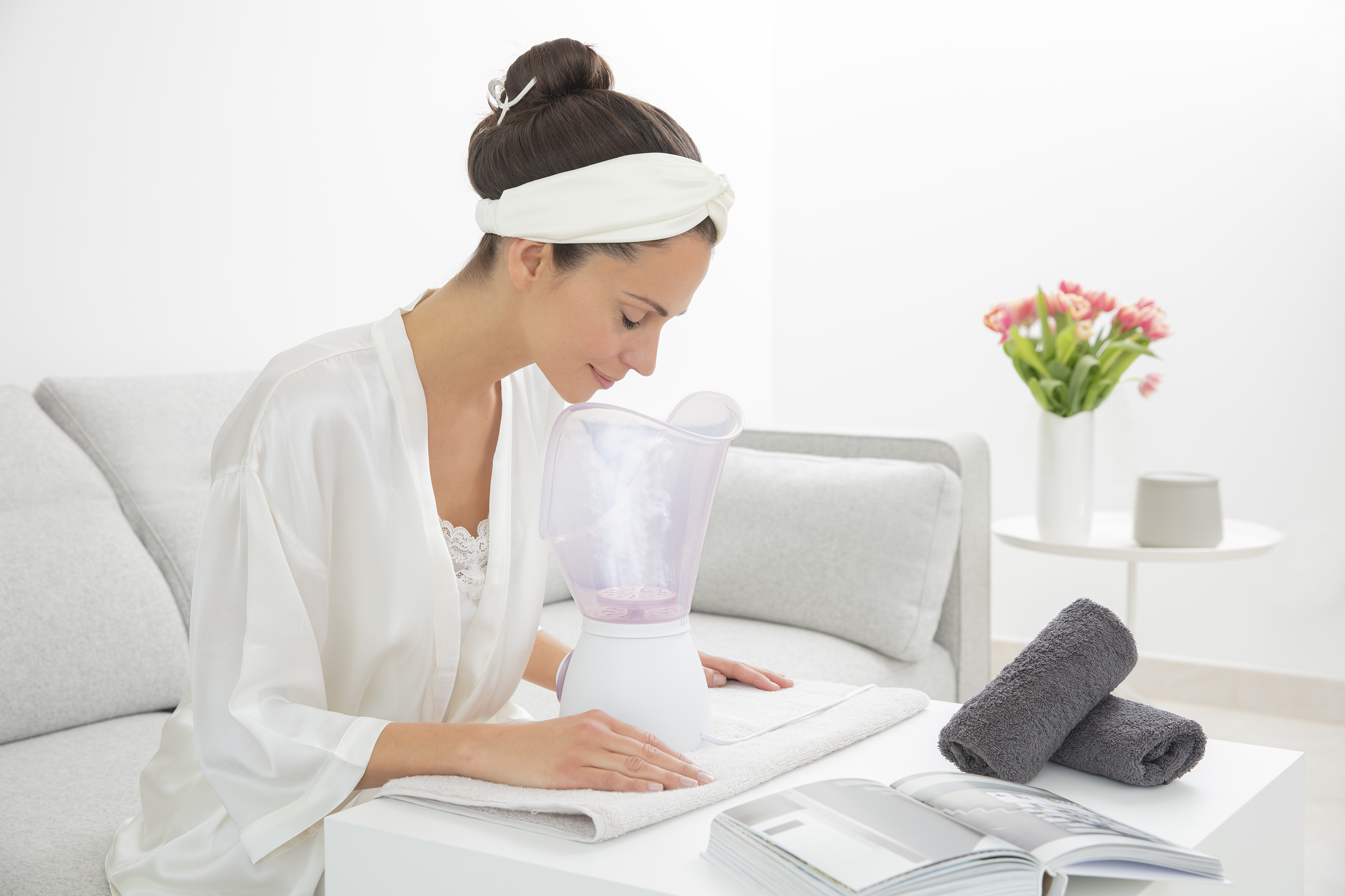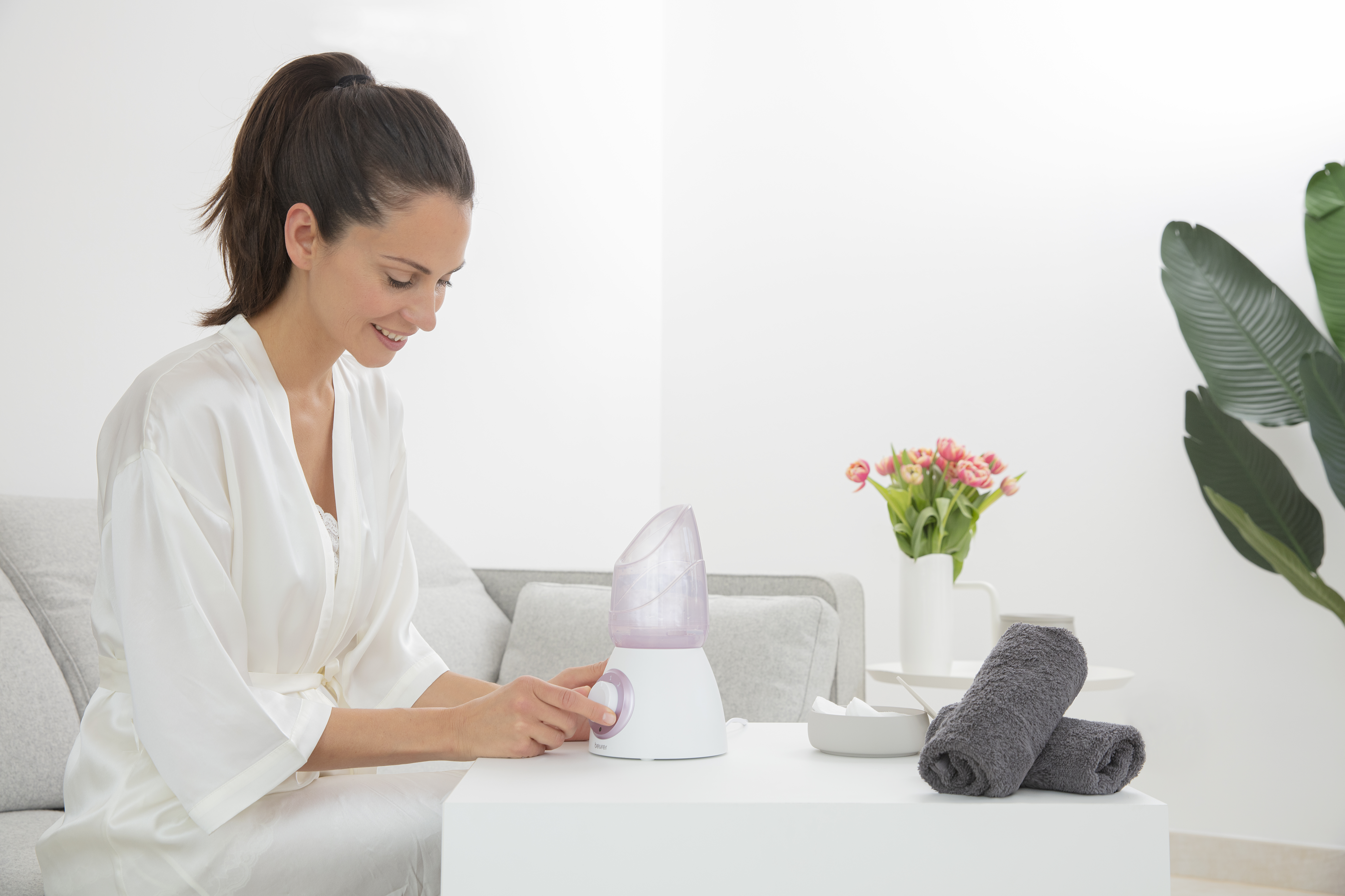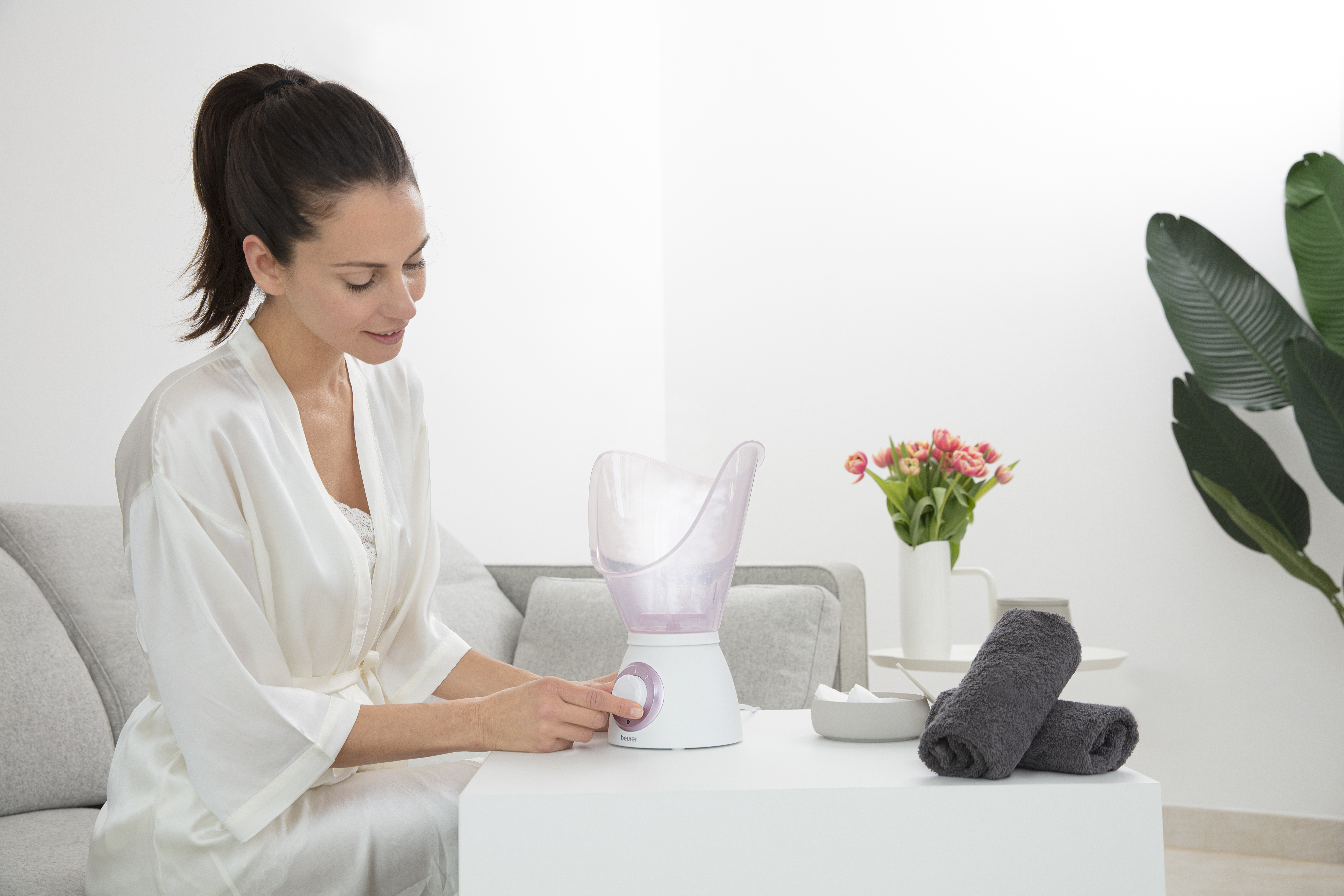 Säteilevä ja kaunis iho: kasvohöyryttimellä voit avata ihohuokoset hellävaraisesti ja valmistella ihoa puhdistukseen. Rauhoittava aromaattinen tuoksu ja inhalaatio lisäävät hyvinvointiasi.