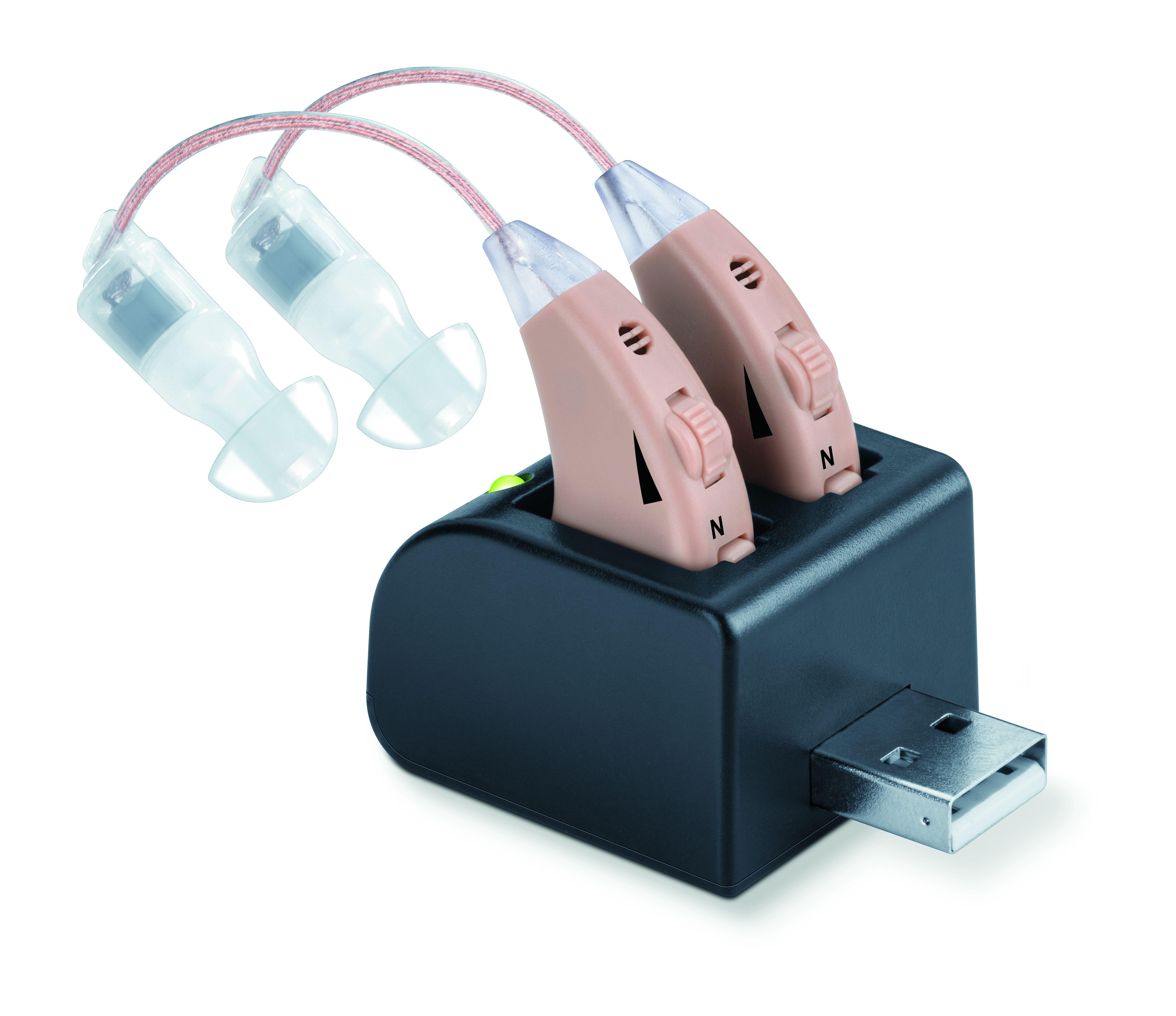 Selkeää kuuloa varte: RIC-mallin ansiosta ergonomisten kuulolaitteiden ääni on erityisen selkeä. Akut kestävät 10 tuntia jatkuvassa käytössä ja täydellä akun latauksella, minkä jälkeen ne voidaan helposti ladata USB:n kautta.