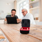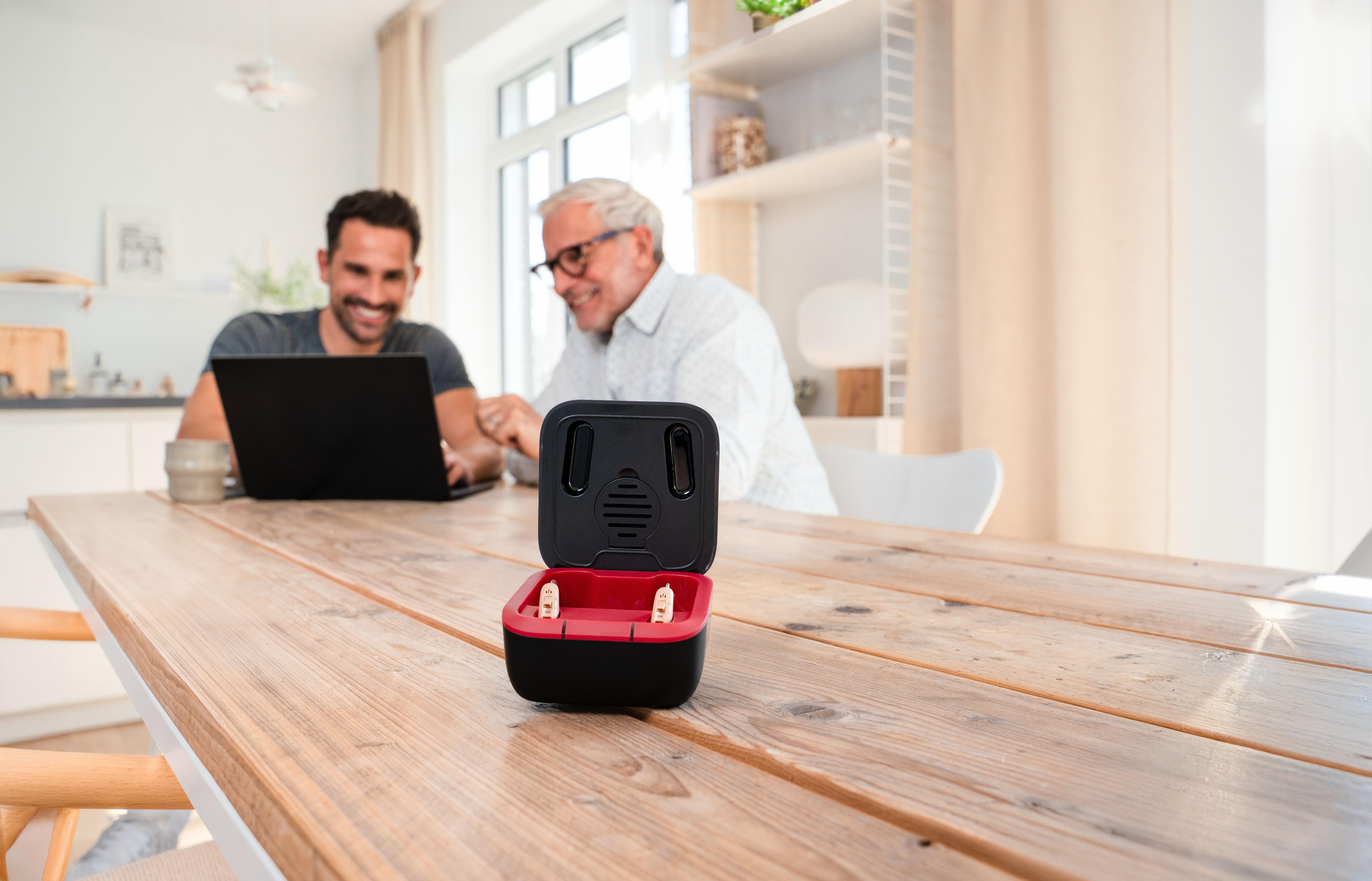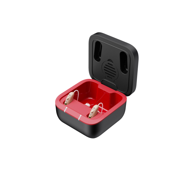 Kevyt ja huomaamaton korvan taakse sijoittuva muotoilu tekee käytöstä erityisen mukavaa. Käytännöllinen latausasema, mukana tulevat lisävarusteet ja 5 vuoden takuu tekevät HA 90:stä luotettavan kumppanin arkeen.