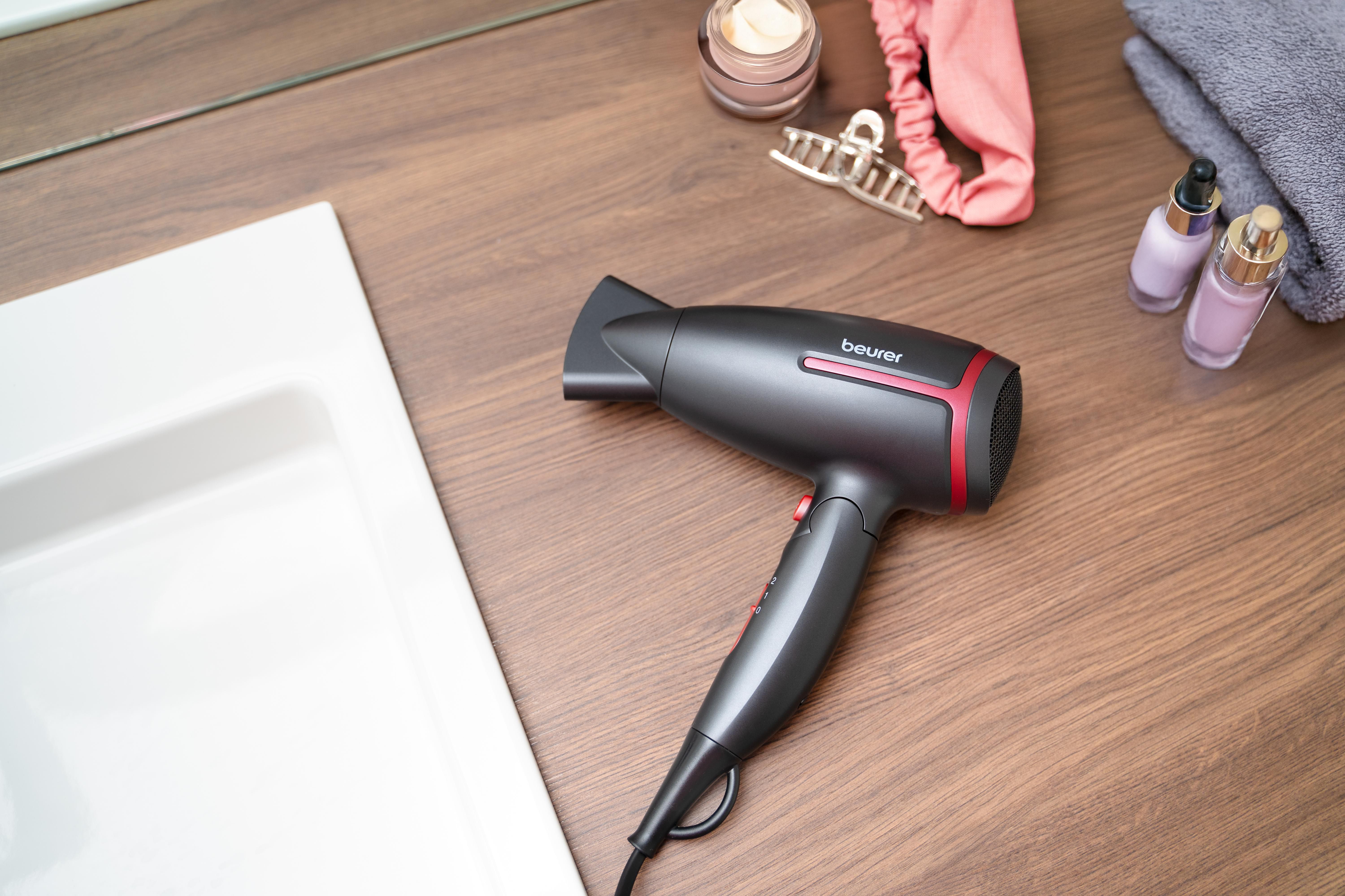 Beurerin tehokas mutta kompakti HC 25 -matkakuivain on ihanteellinen kumppani lomallesi. Sitä voi käyttää kaikkialla maailmassa, ja integroitu ionitoiminto antaa hiuksille lisää kiiltoa. Taitettavan kahvan ansiosta se vie vain vähän tilaa matkatavaroissasi.