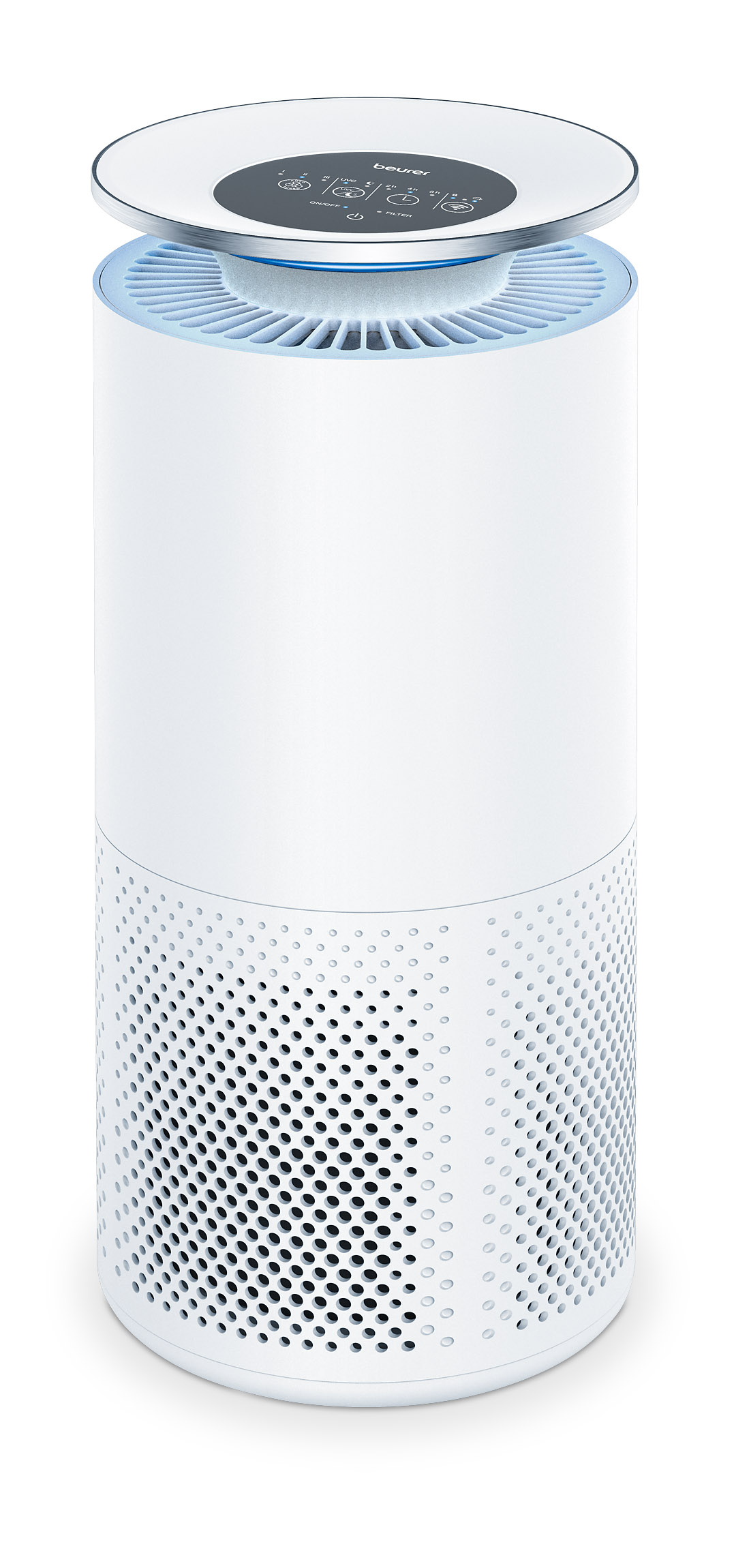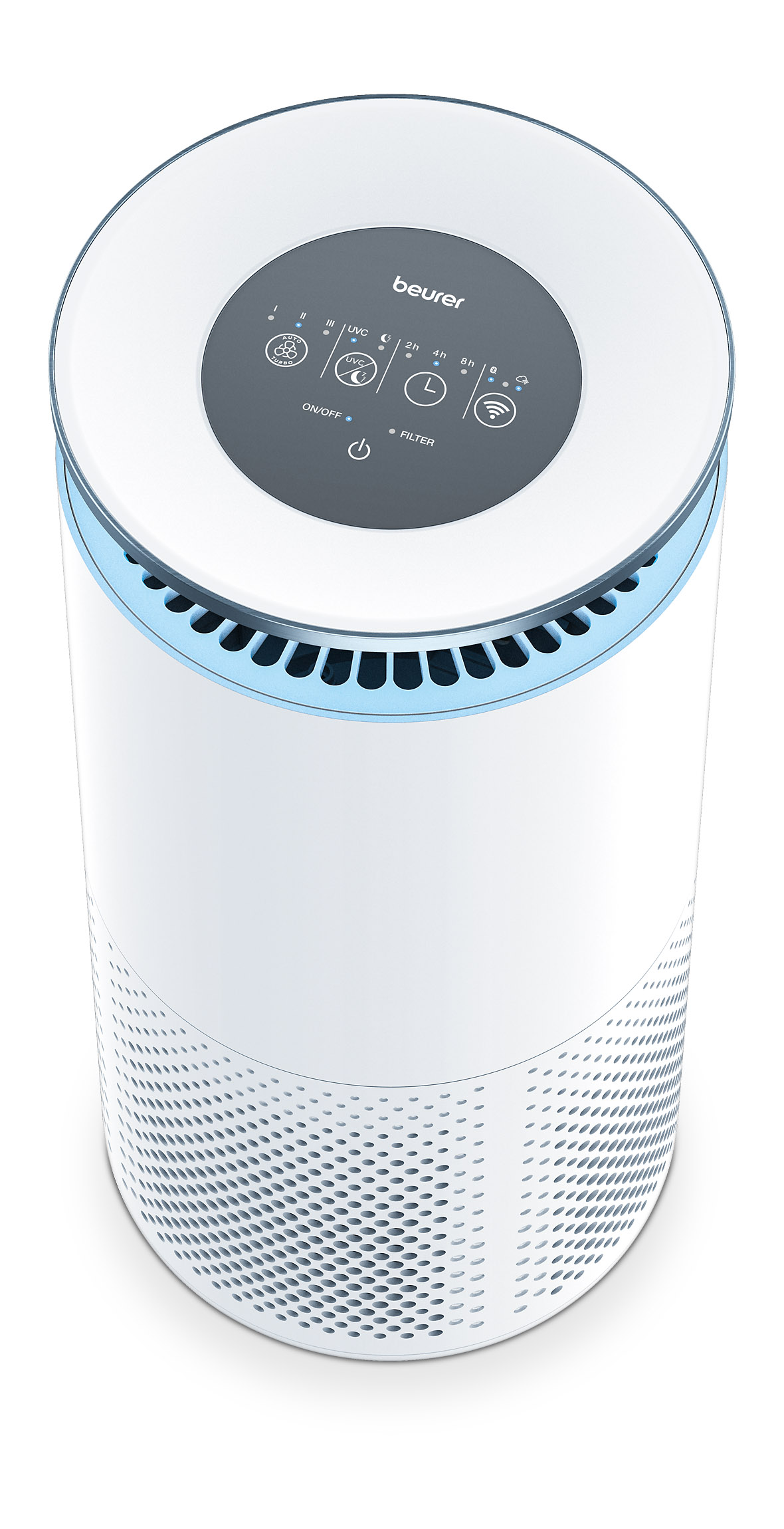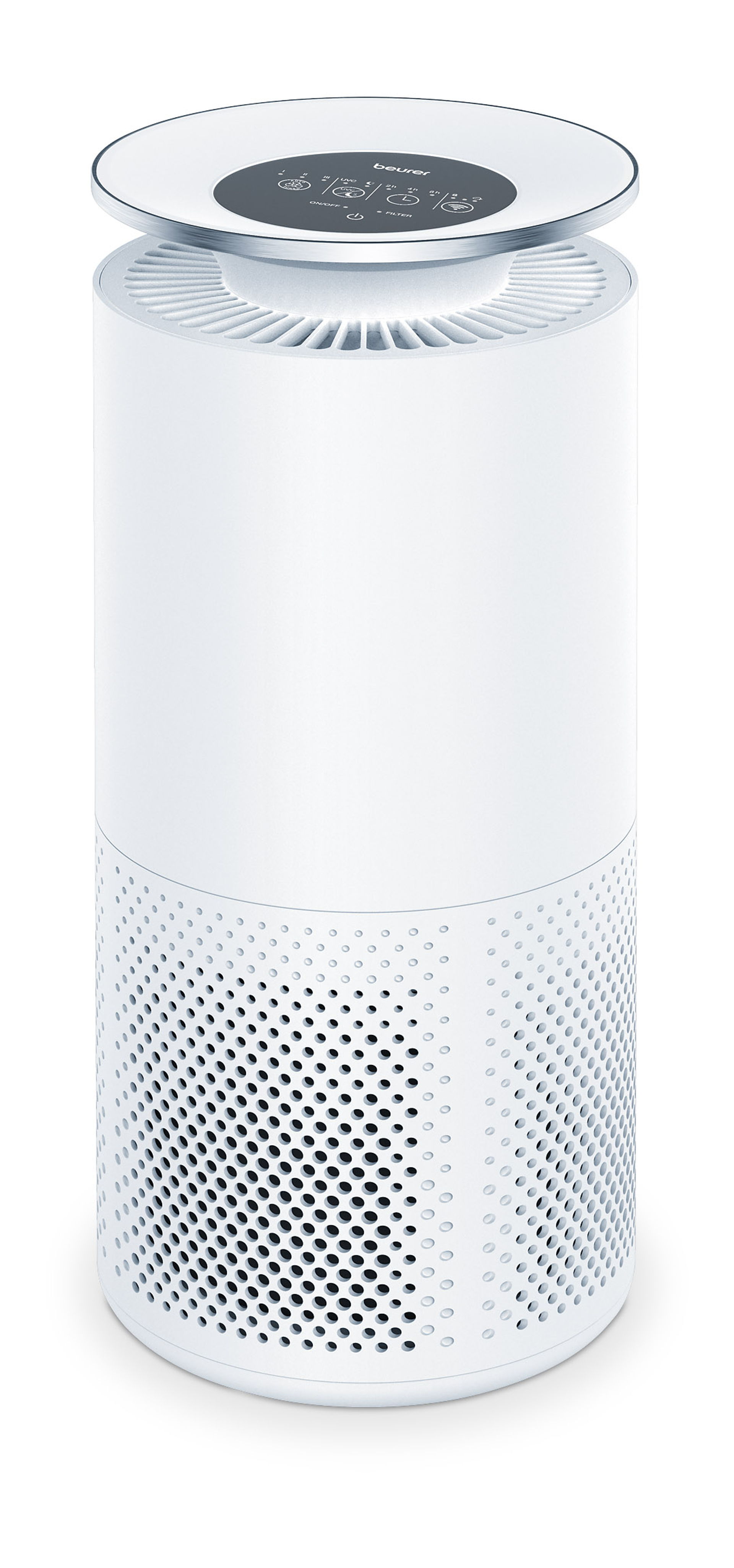 Älykäs ilmanpuhdistin tekee vaikutuksen modernilla muotoilullaan ja tehokkaalla suorituskyvyllään. Älykkään tunnistimensa avulla ilmanpuhdistin havaitsee hienon pölyn, jonka hiukkaskoko on 2,5 μm, ja suodattaa ilmasta siitepölyn, kotipölyn, eläinten karvat, hajut, erilaiset bakteerit ja virukset. ”beurer FreshHome” -sovellus (*2) mahdollistaa kätevän ohjauksen. Ilmanpuhdistin mukauttaa puhdistustehon ympäröivään ilmaan ja varmistaa siten paremman ilmanlaadun enintään noin 69 m²:n (*1) huoneissa.