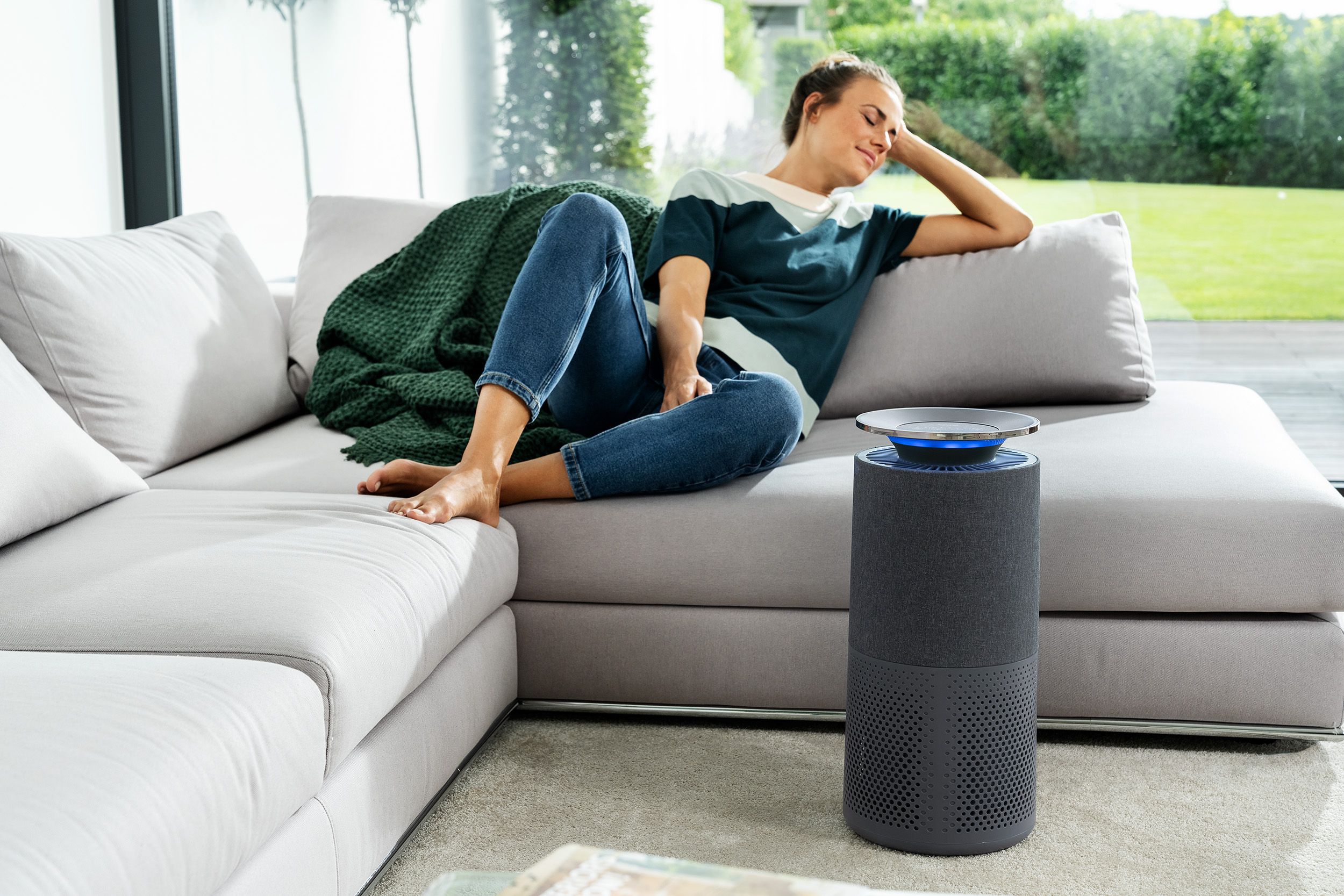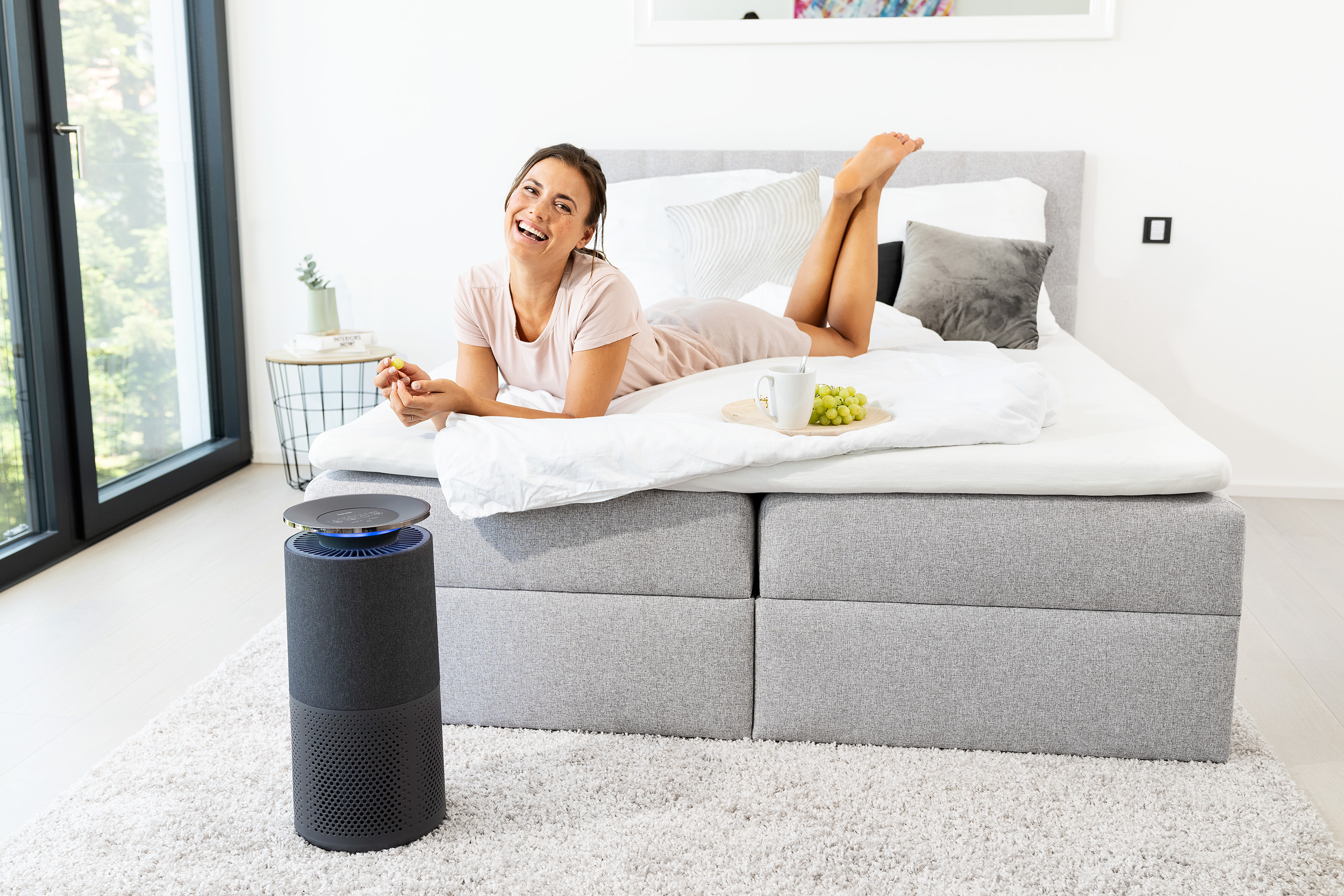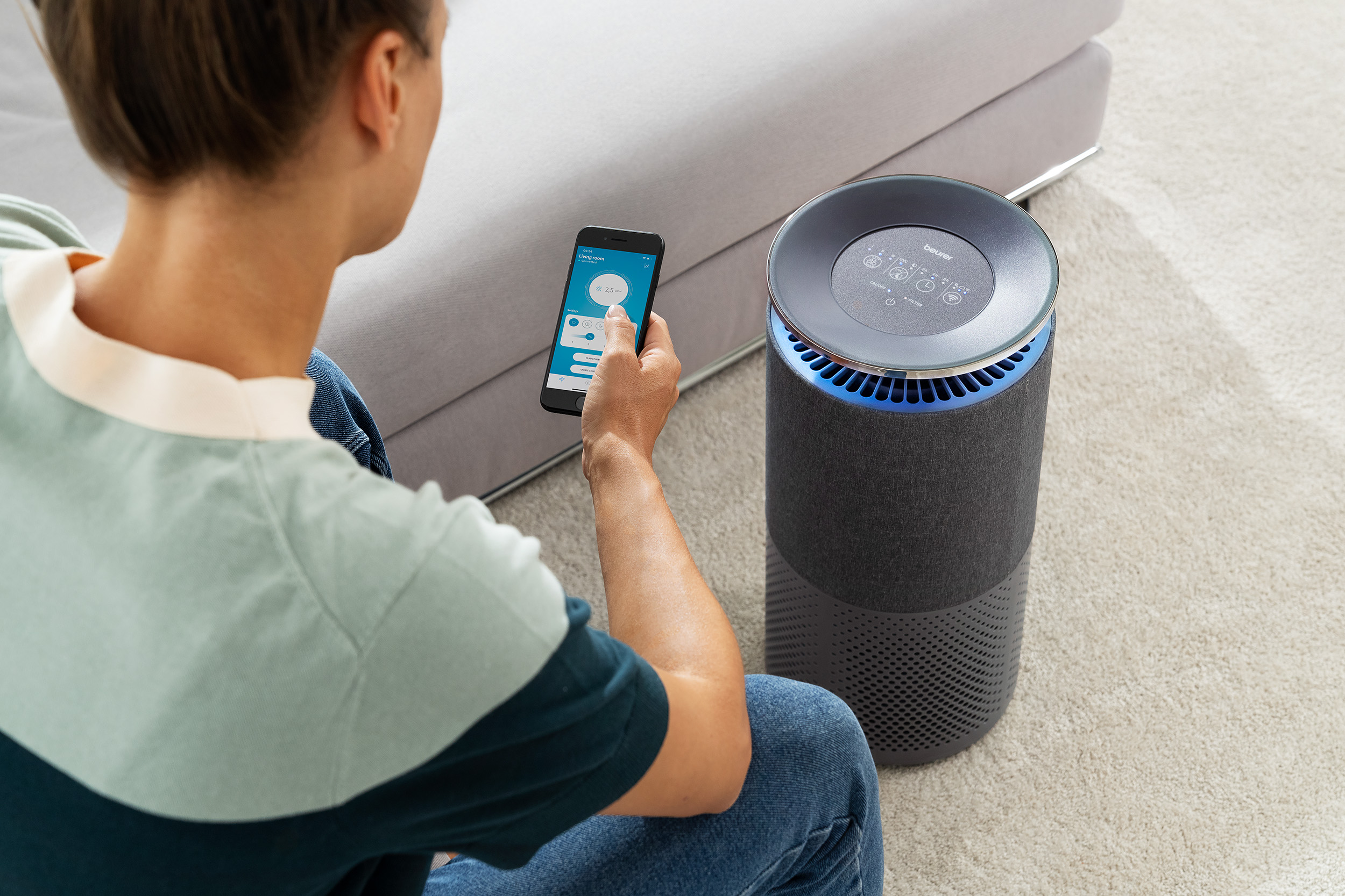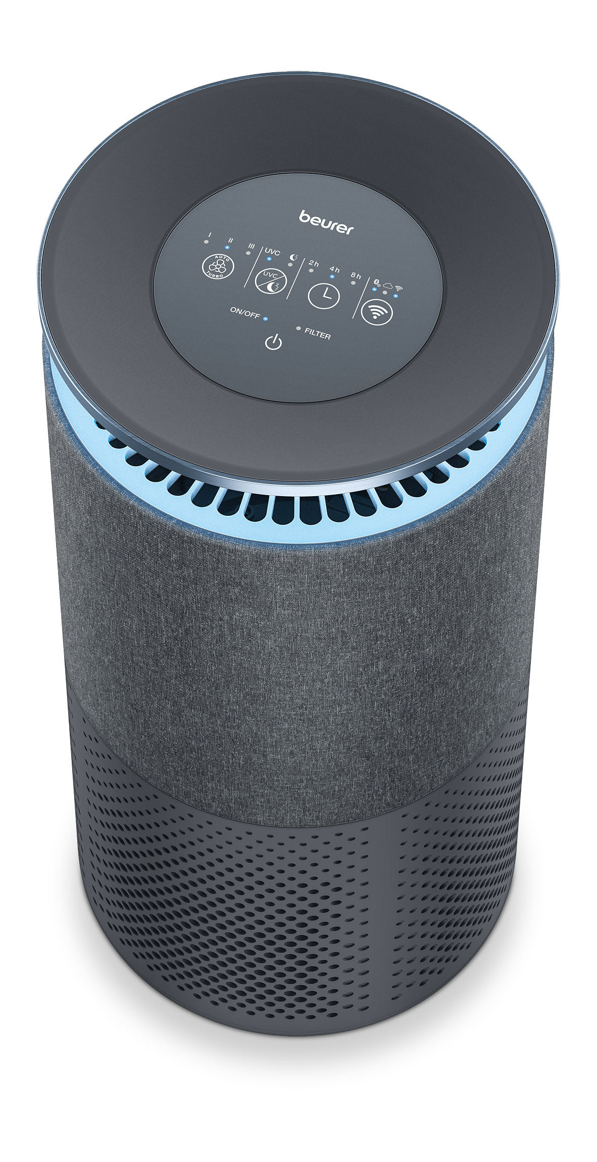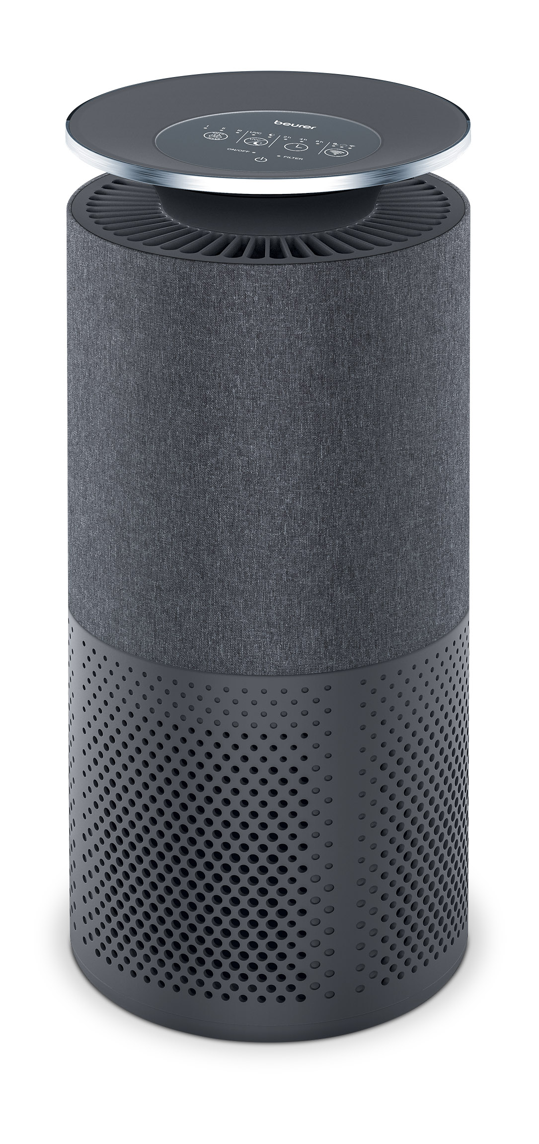 Älykäs ilmanpuhdistin, jossa on tyylikäs kangaspäällinen, sopii täydellisesti mihin tahansa kotiin. Älykkään tunnistimensa avulla ilmanpuhdistin havaitsee hienon pölyn, jonka hiukkaskoko on 2,5 μm, ja suodattaa ilmasta siitepölyn, kotipölyn, eläinten karvat, hajut, erilaiset bakteerit ja virukset. ”beurer FreshHome” -sovellus (*2) mahdollistaa kätevän ohjauksen. Ilmanpuhdistin mukauttaa puhdistustehon ympäröivään ilmaan ja varmistaa siten paremman ilmanlaadun enintään noin 69 m²:n (*1) huoneissa.