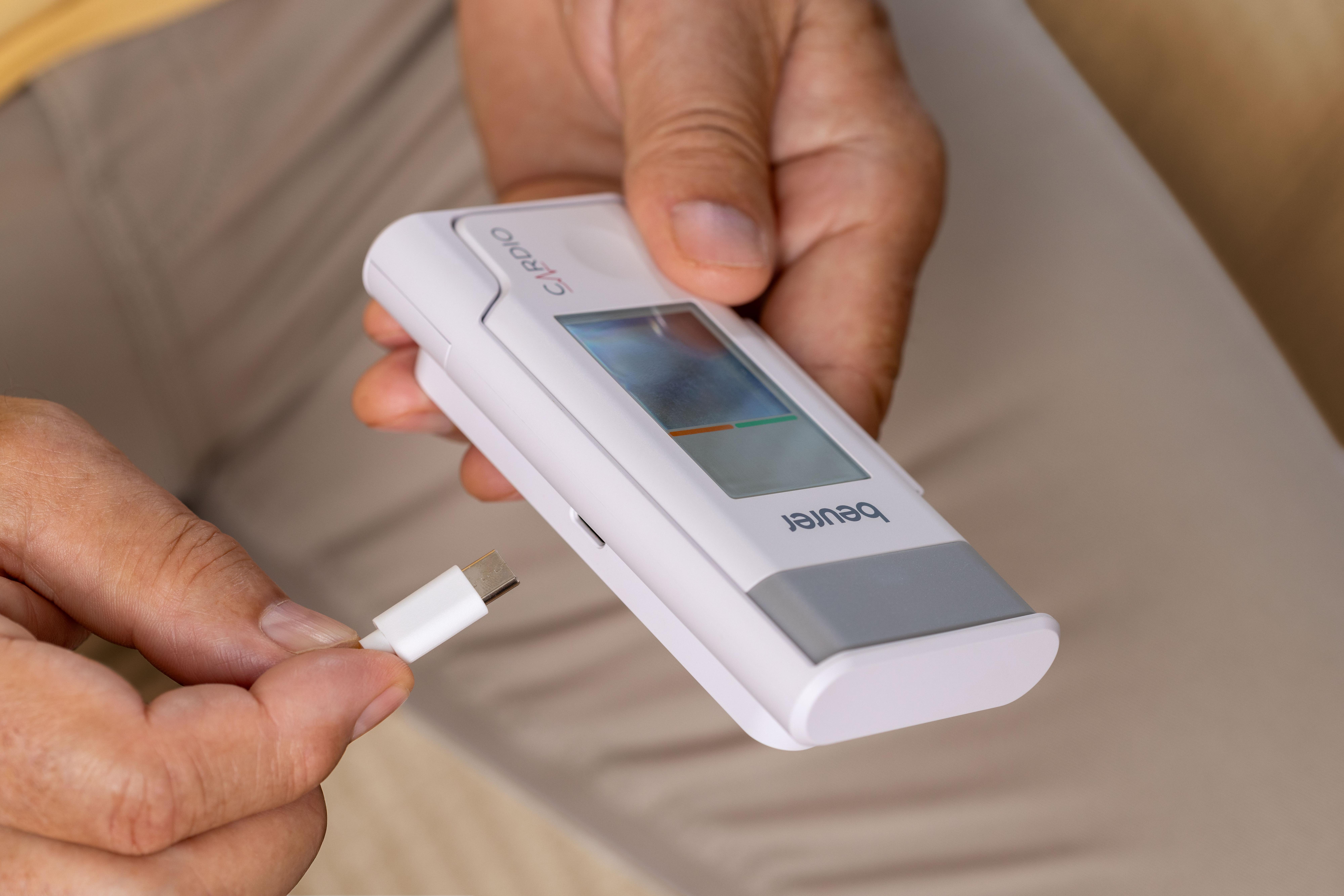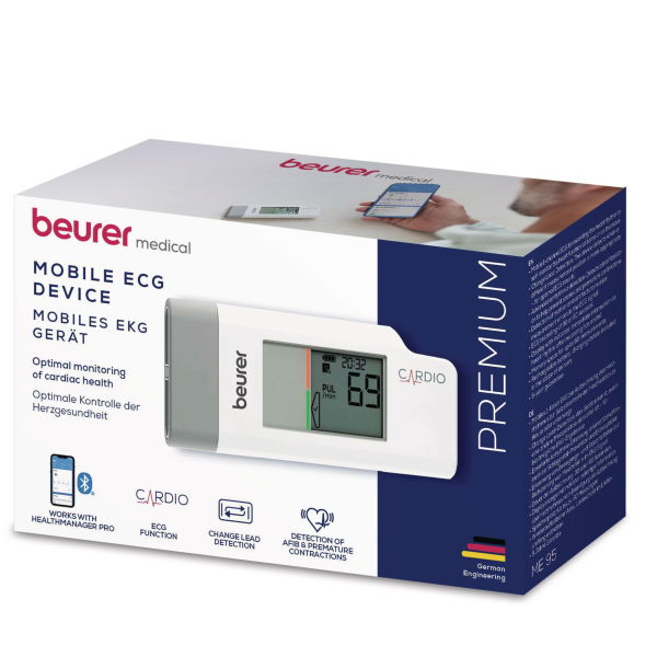 Beurer ME 95 -laitteella voit seurata sydämesi rytmiä milloin tahansa. Mobiili EKG-laite mahdollistaa nopean, kätevän ja luotettavan mittauksen – kotona tai liikkeellä ollessasi. Lääkinnällisenä laitteena se tarjoaa joustavan mittauksen sekä molempien käsien kautta että käden ja rinnan kautta. Kompakti ja ladattava EKG-laite on helppokäyttöinen ja antaa varmuutta sydämen rytmin säännölliseen seurantaan.