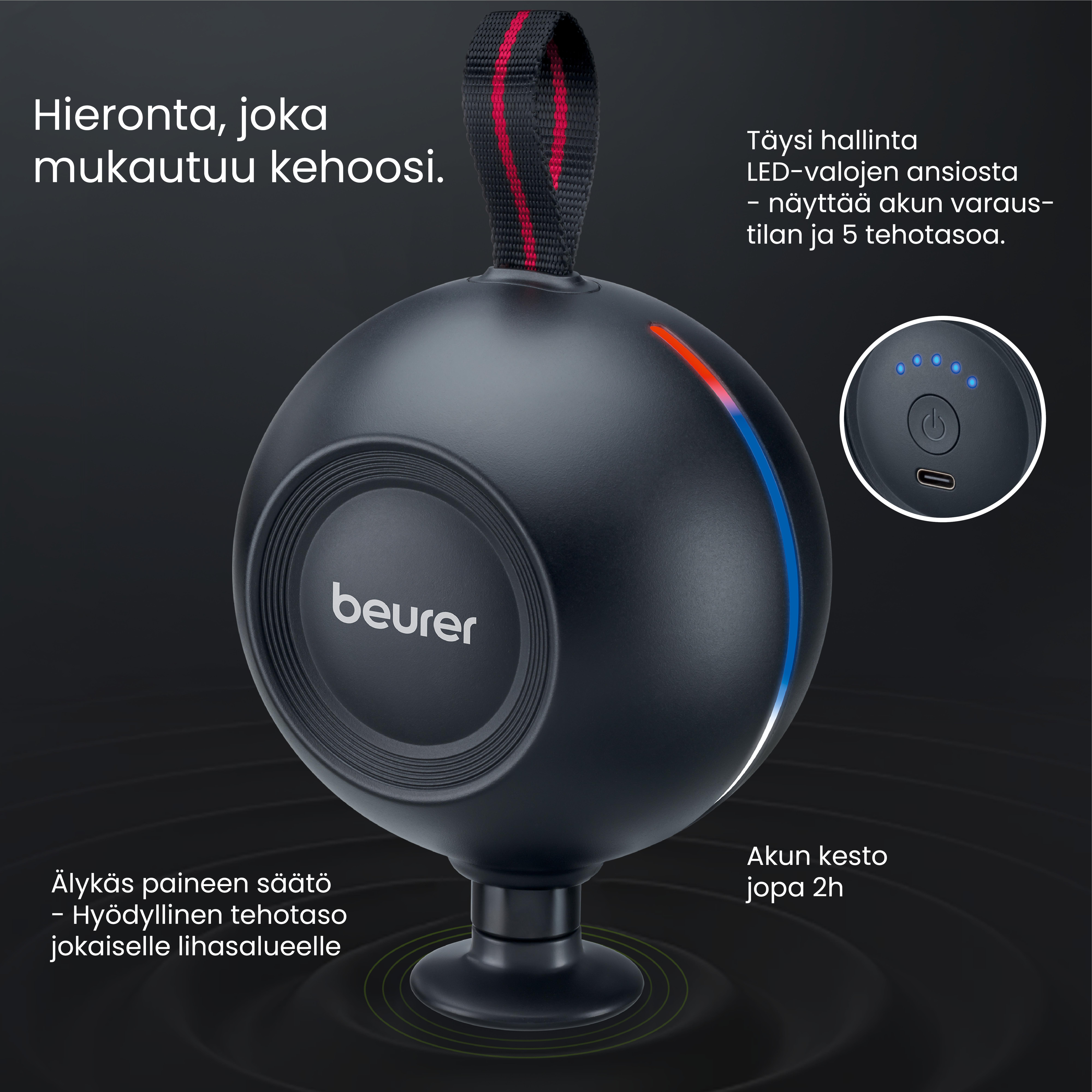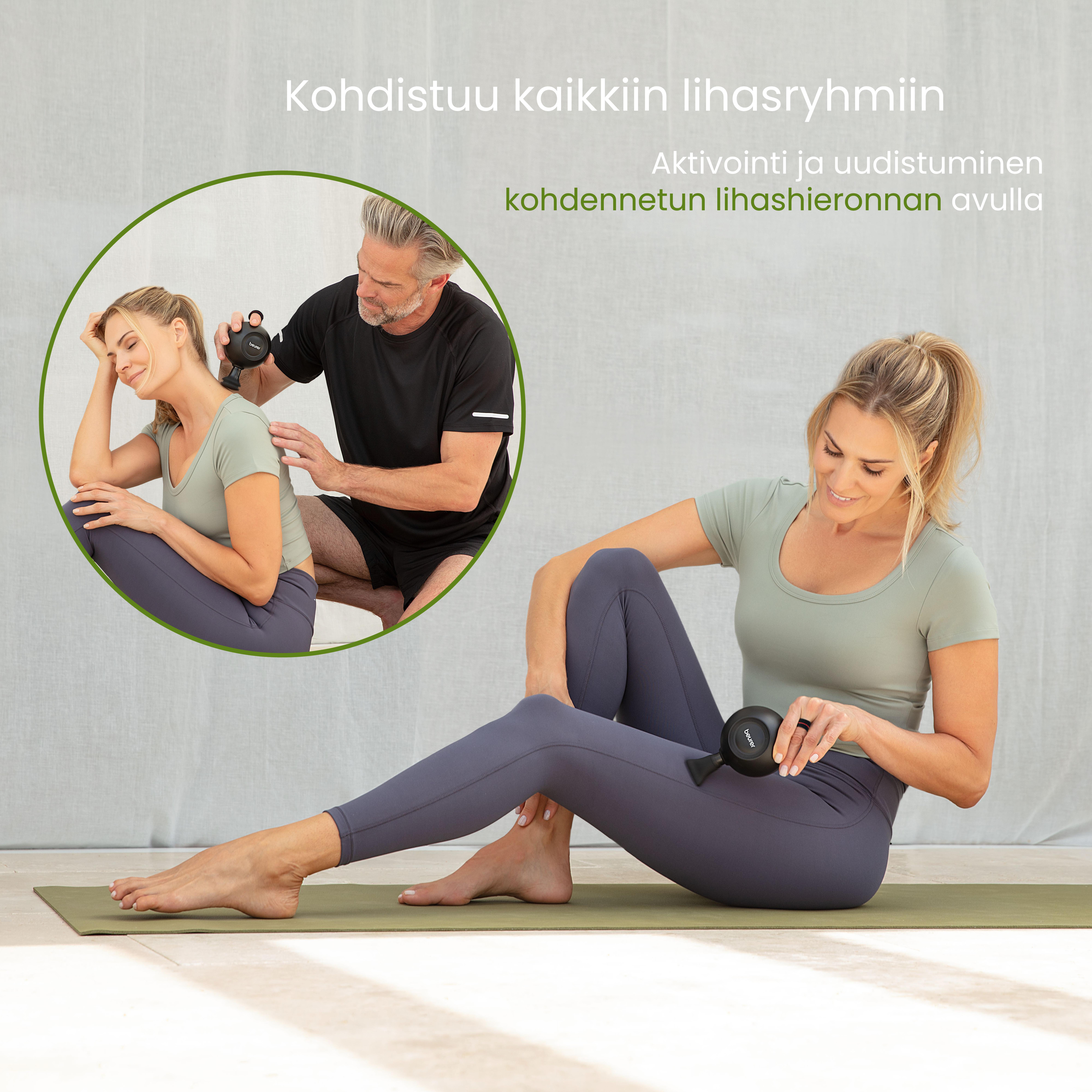 MG 101 -lihashuoltovasara takaa rentoutuneet lihakset ja kohdennetun palautuksen – niin kotona, matkoilla kuin treenin aikana. Paineanturitekniikan ansiosta se säätää tehoa optimaalisesti, ja tehokas, harjaton moottori mahdollistaa syvähieronnan. Viisi tehotasoa ja laadukkaat lisälaitteet tarjoavat yksilöllisen hoidon jokaiselle lihasalueelle. Erityisen miellyttävää: hiljainen toiminta, vain 38 dB ensimmäisellä tasolla. Kompakti ja tehokas – tuntuvaan palautumiseen jokaisen harjoituksen jälkeen!