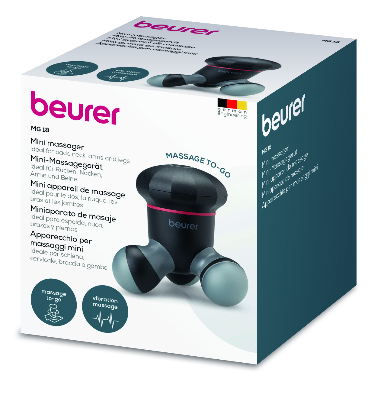 Hierontaa mukaan matkalle: Beurerin minihierojan ansiosta sinun ei tarvitse luopua rauhoittavasta hieronnasta, kun olet liikkeellä. MG 18 on ihanteellinen mihin tahansa tilaisuuteen. Se mahtuu mihin tahansa käsilaukkuun ja hemmottelee selkää, niskaa, käsivarsia tai jalkoja lempeällä tärinähieronnalla.