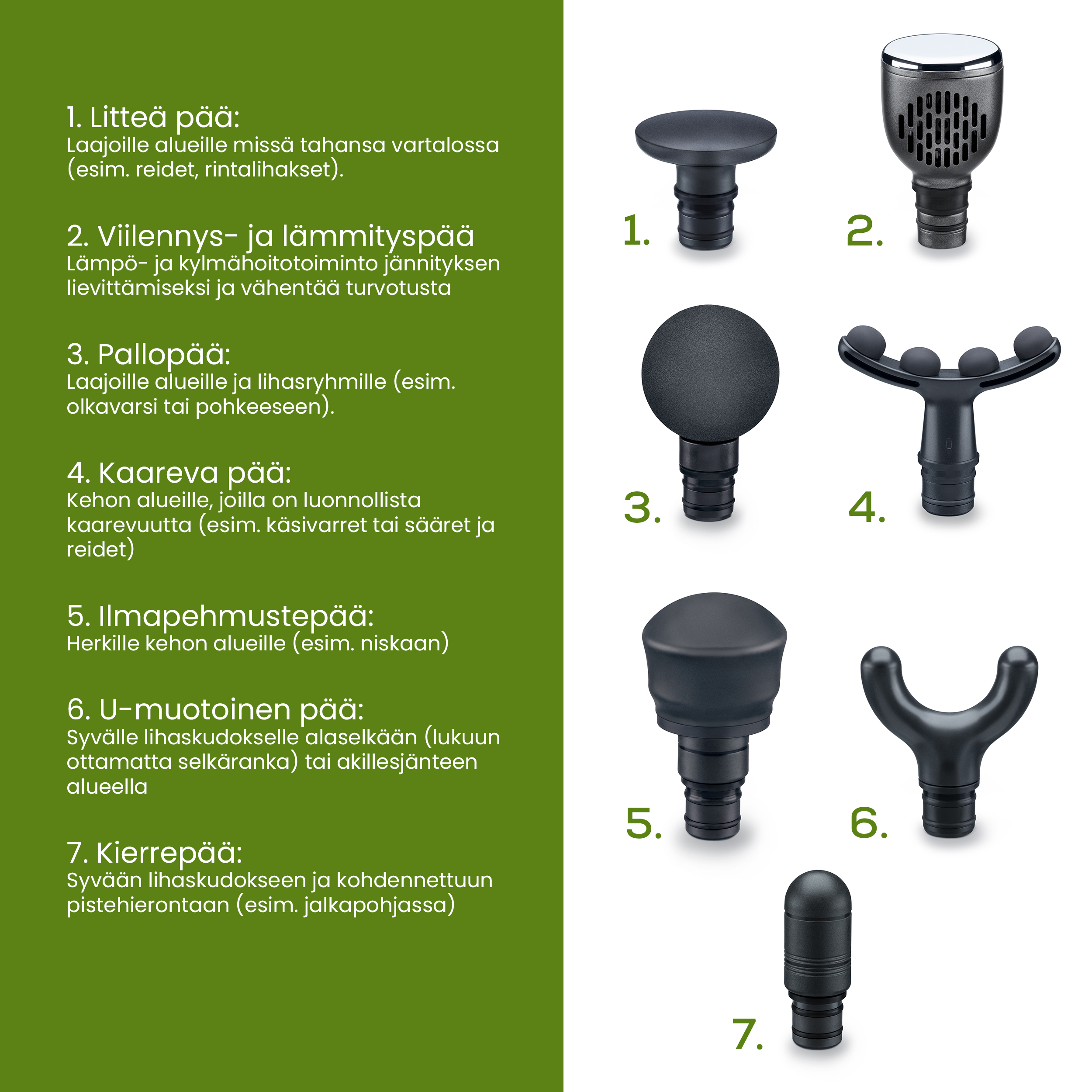 - 7 korkealaatuista hierontapäätä