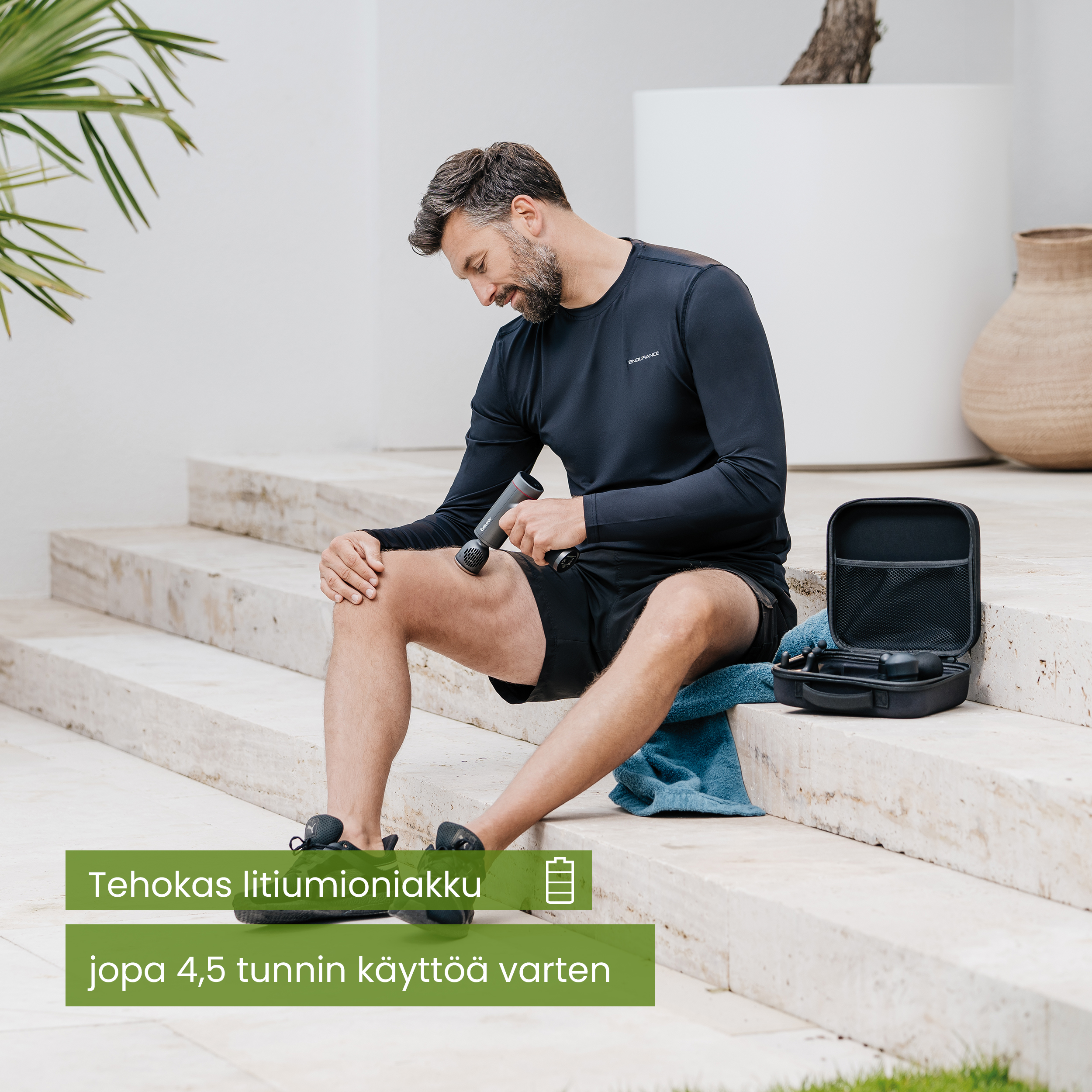 - Käytännöllinen säilytyskotelo lihashuoltovasaralle ja lisälaitteille
