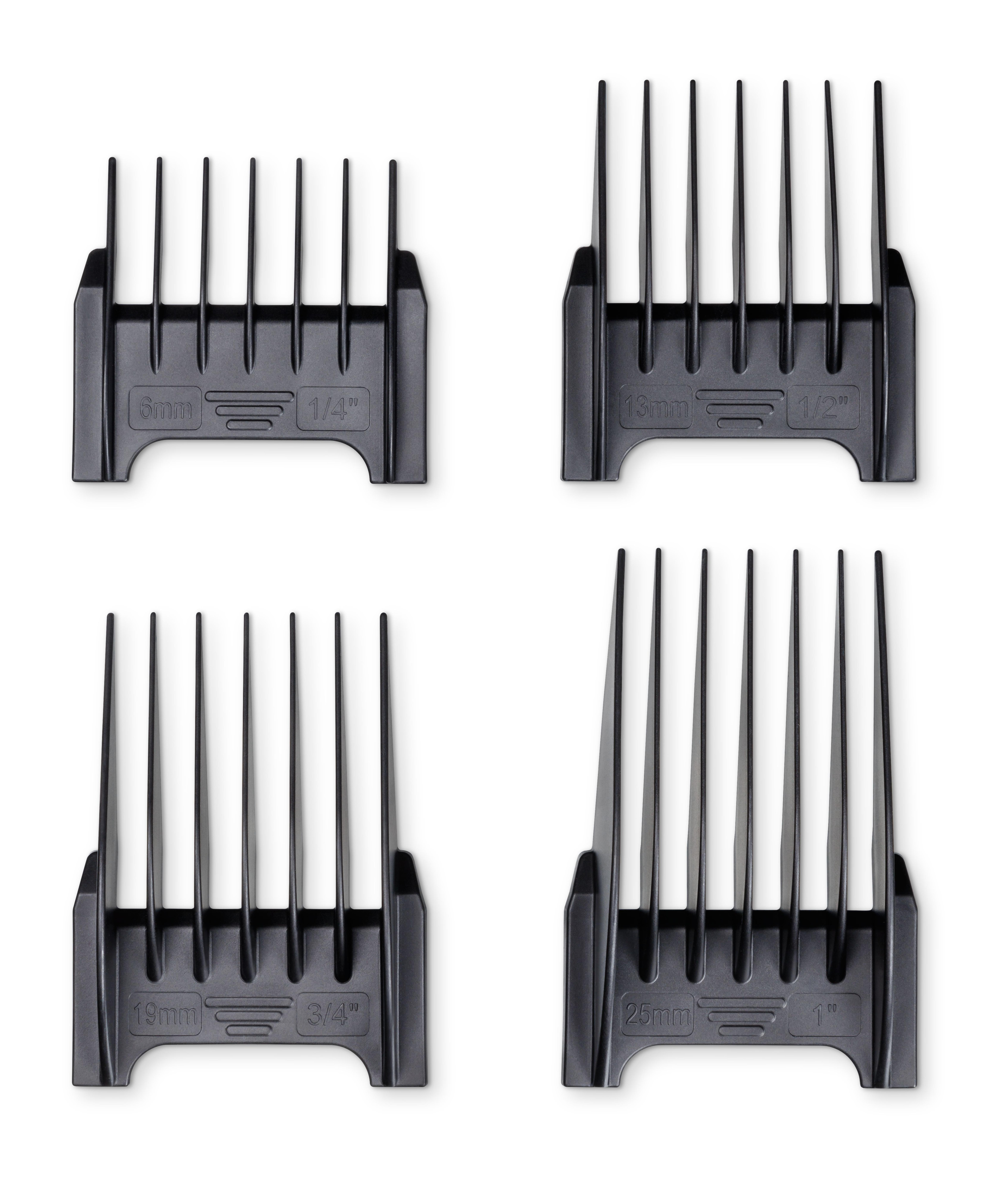 - 4 leikkuupituutta 4 kampapään avulla: 6 mm, 13 mm, 19 mm, 25 mm