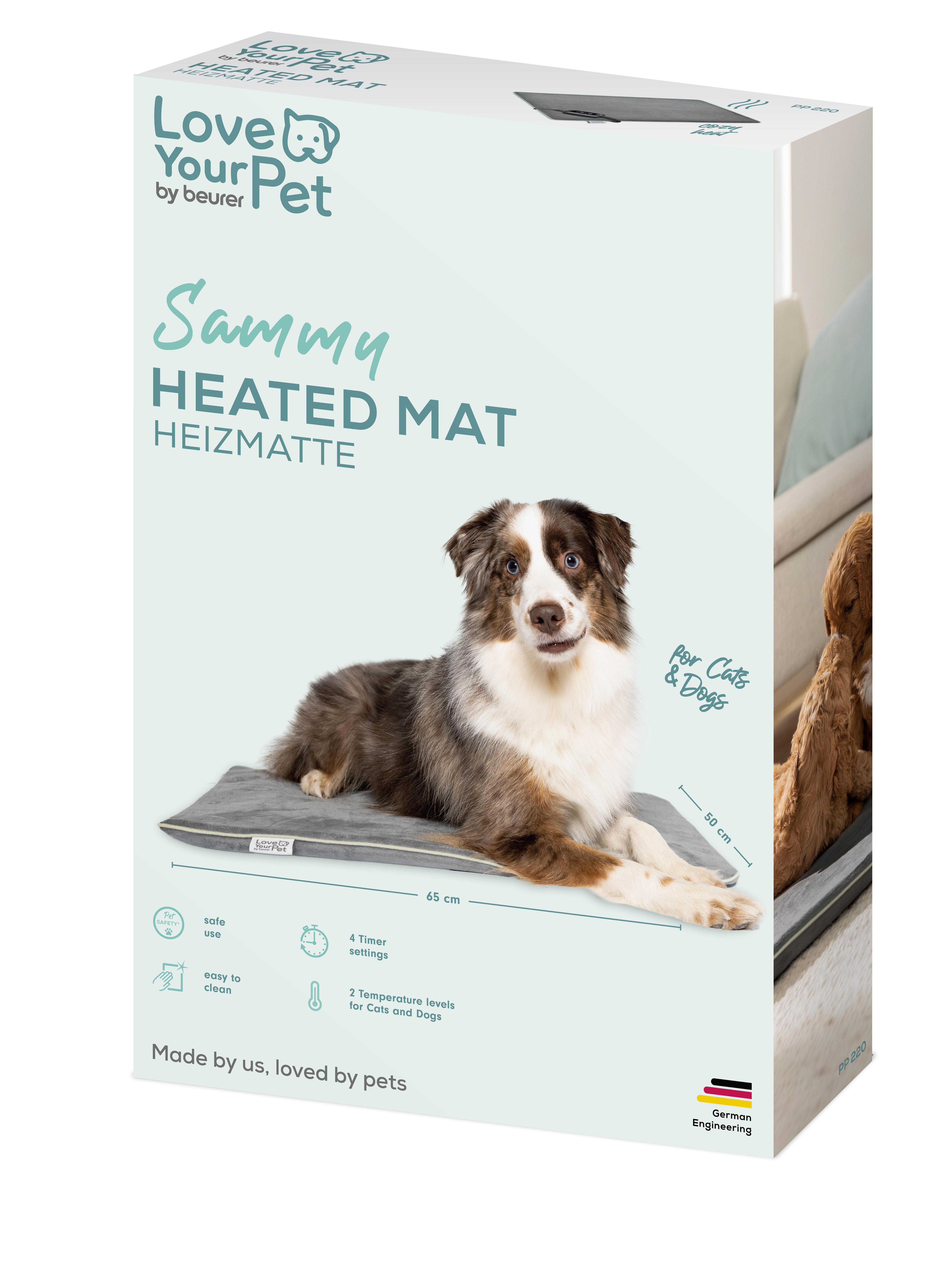 Lämmitettävä matto ”Sammy” tarjoaa koirallesi tai kissallesi miellyttävää lämpöä napin painalluksella. Sitä voidaan käyttää joustavasti lemmikkien sängyssä, sohvalla tai kissan kiipelypuussa, ja siinä on irrotettava, pestävä päällinen. Yksilöllisesti säädettävät lämpötila- ja ajastinasetukset sekä integroitu ylikuumenemisen ja puremisen esto takaavat turvallisuuden ja mukavuuden. 65 x 50 cm mittojen ansiosta tämä sähköinen lämpömatto sopii myös suuremmille roduille.