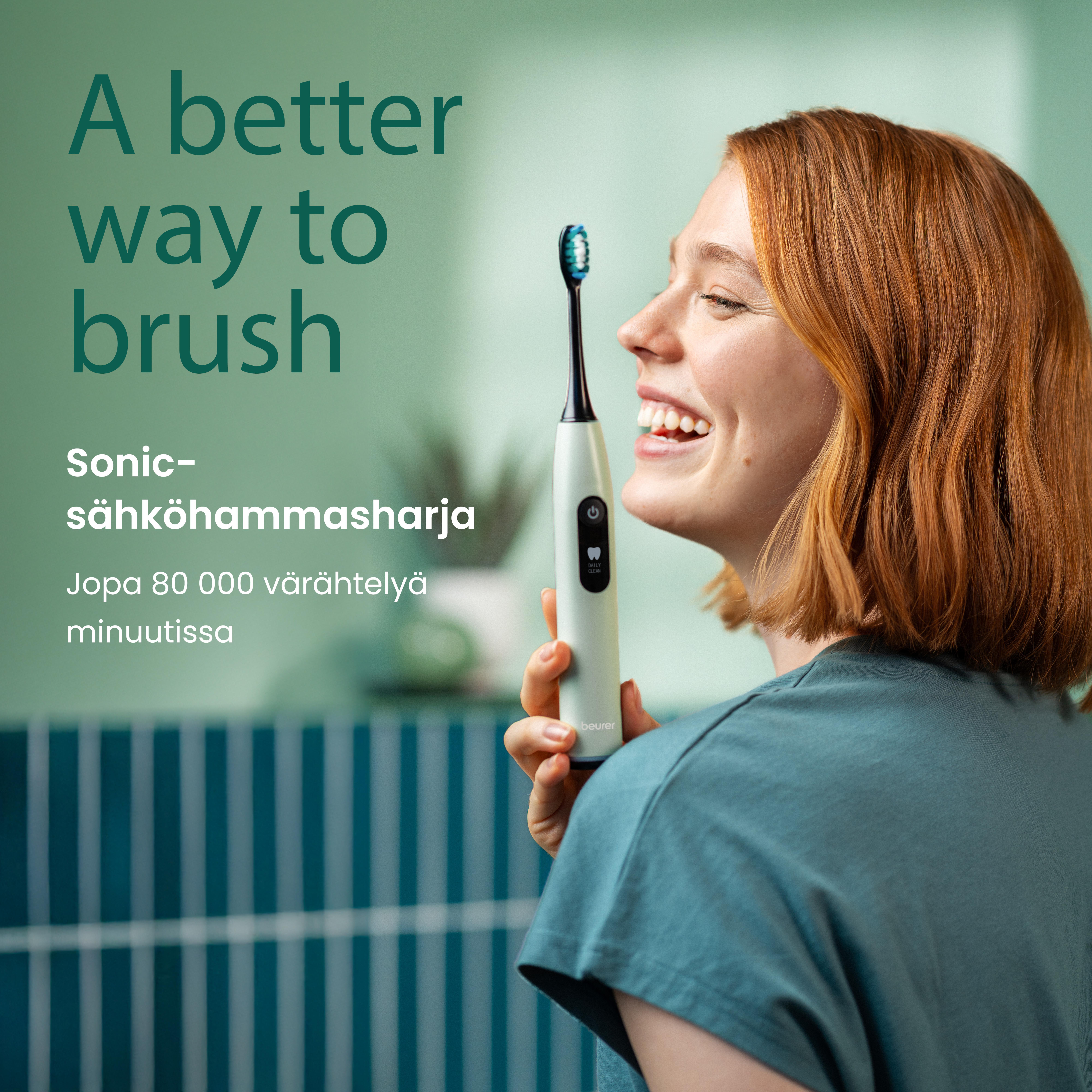 - Tehokas sonic-tekniikka perusteelliseen mutta hellävaraiseen hampaiden hoitoon