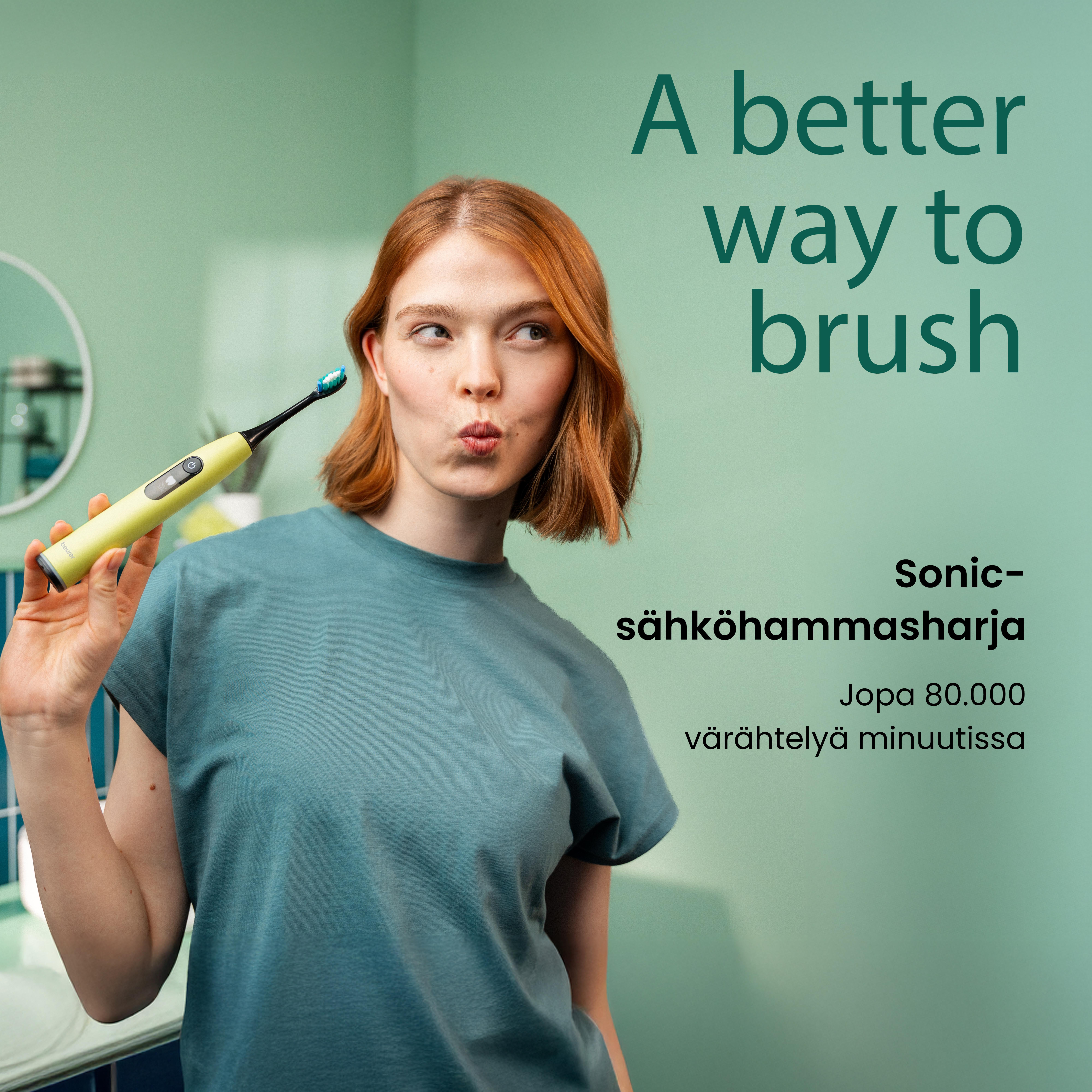 - Tehokas sonic-tekniikka perusteelliseen mutta hellävaraiseen hampaiden hoitoon