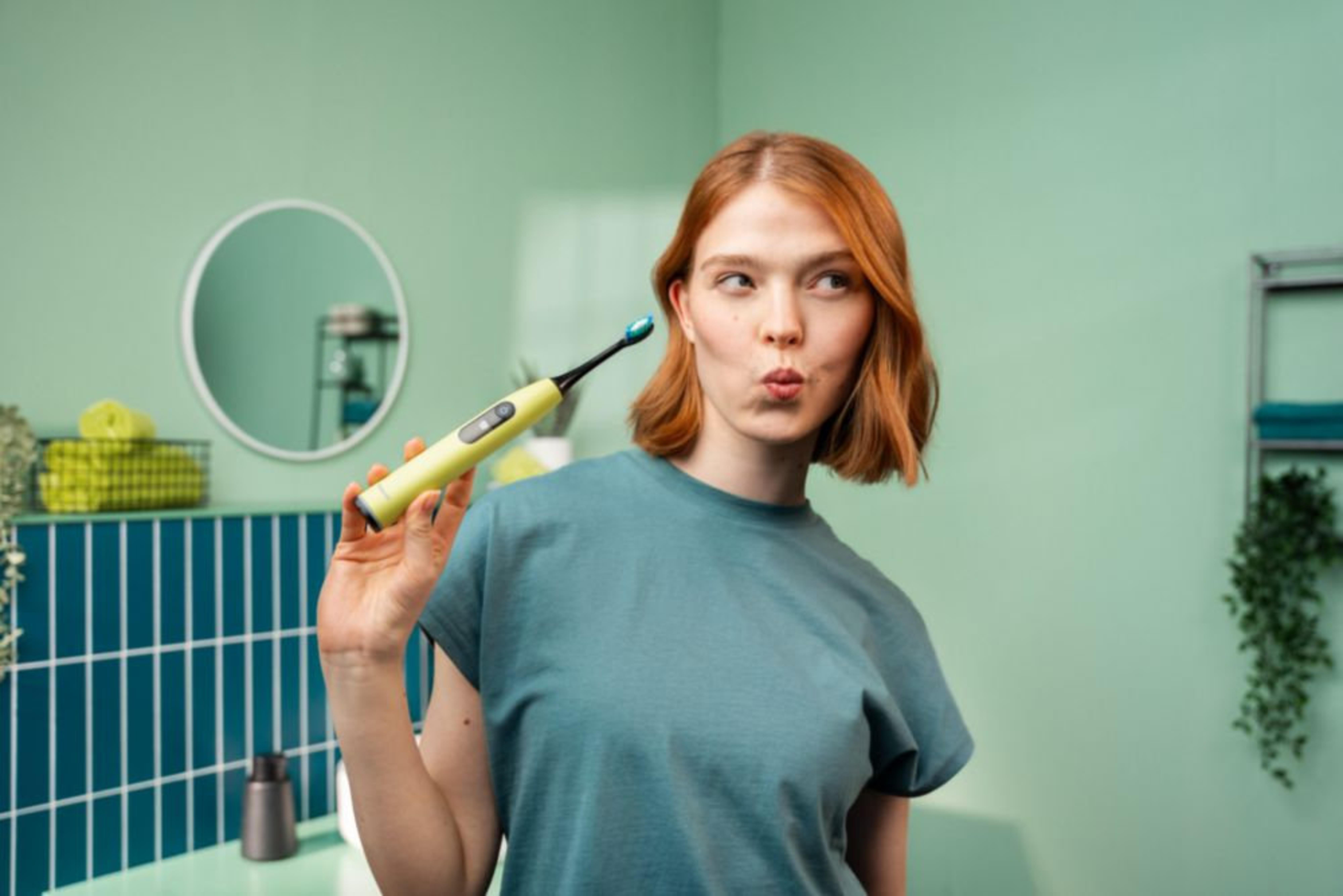 Moderni sitruunan värinen sonic-sähköhammasharja , 5 harjausohjelmaa, LCD-näyttö ja paineanturi