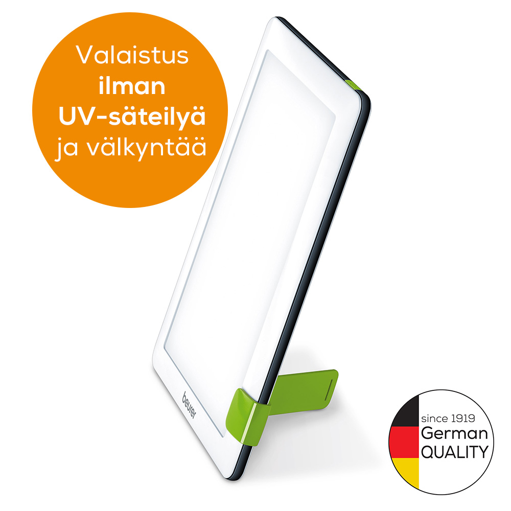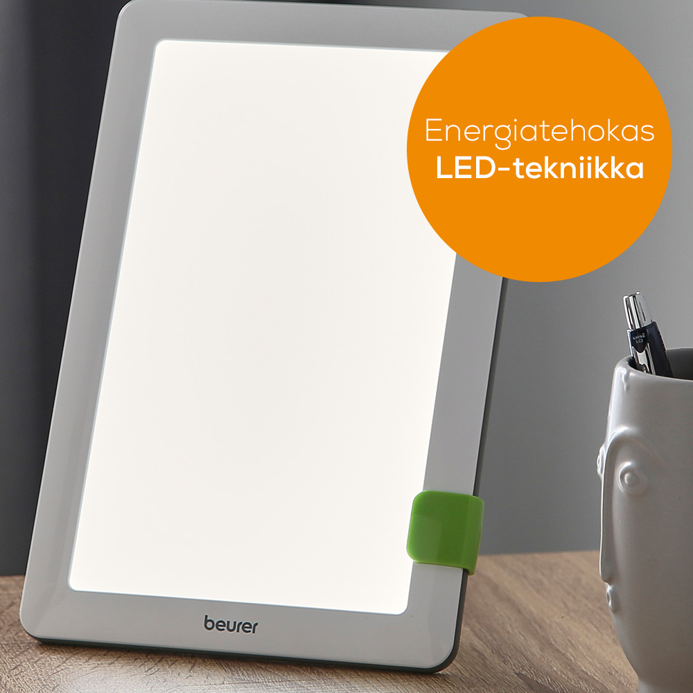 Tablettikokoisen TL 30:n (15,6 x 23,6 cm) kompaktin muotoilun ansiosta kirkasvalolamppu on käytännöllinen jokapäiväinen kumppani kotona, toimistossa tai matkoilla. Kun se on kerran kytketty, se tarjoaa aina ylimääräisen annoksen päivänvaloa.