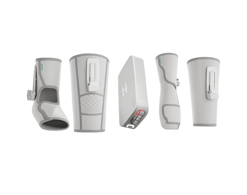 Erikseen myytävällä universaalilla ohjainyksiköllä toimiva pohjetuki on kevyt, langaton ja helppokäyttöinen. Voit nauttia tehokkaasta ja kannettavasta kompressiohieronnasta jopa viiden tunnin ajan – niin kotona kuin liikkeellä ollessasi.