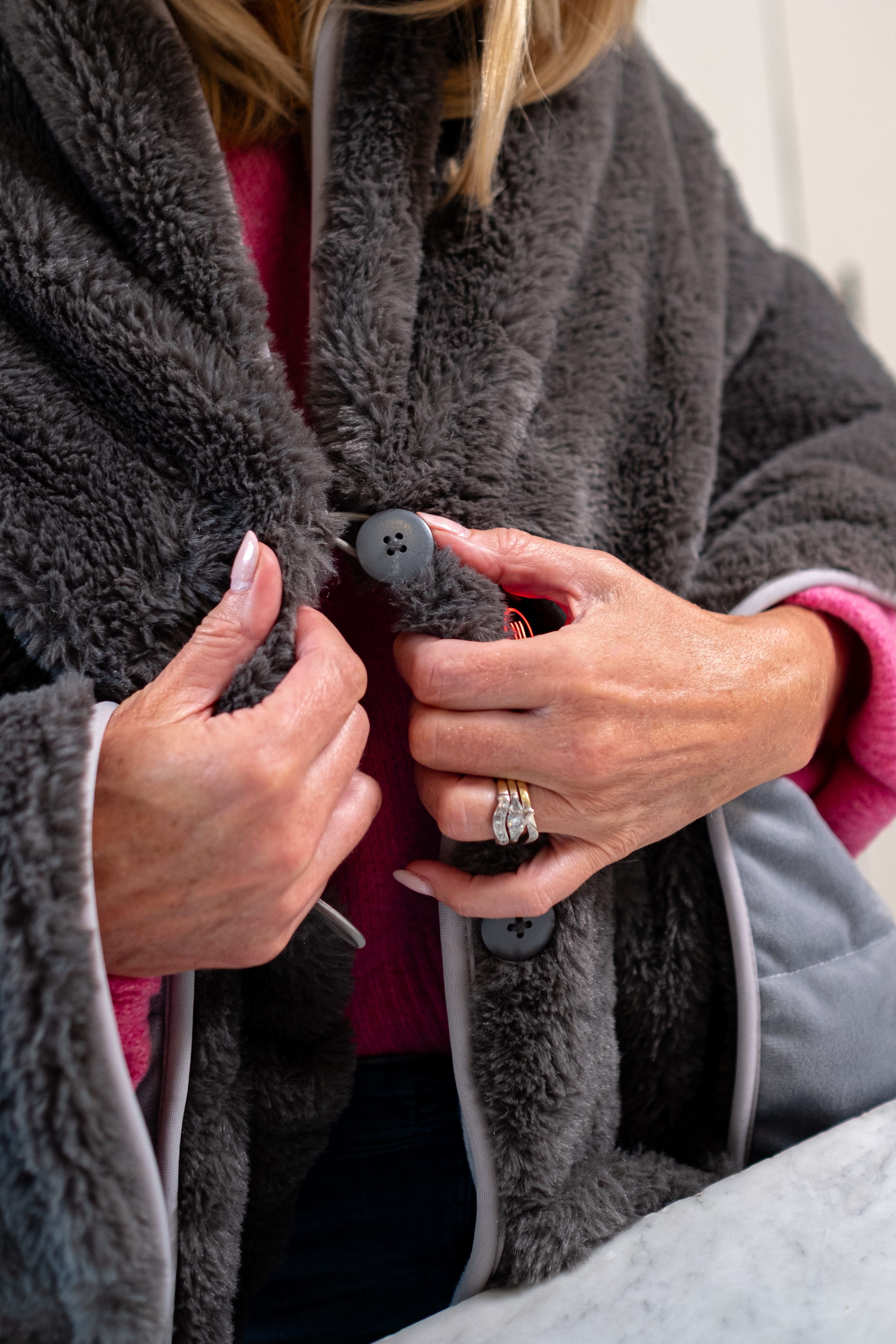 Kuin lämmin halaus viileänä päivänä – Homedics Cosy Cordless Warming Shawl kietoo sinut rauhoittavaan lämpöön aina kun kaipaat lisälämpöä. Erittäin pehmeä ja ylellisen muhkealla materiaalilla vuorattu hartiahuivi tarjoaa miellyttävää lämpöä jopa 38 °C asti – myös liikkeellä ollessasi.