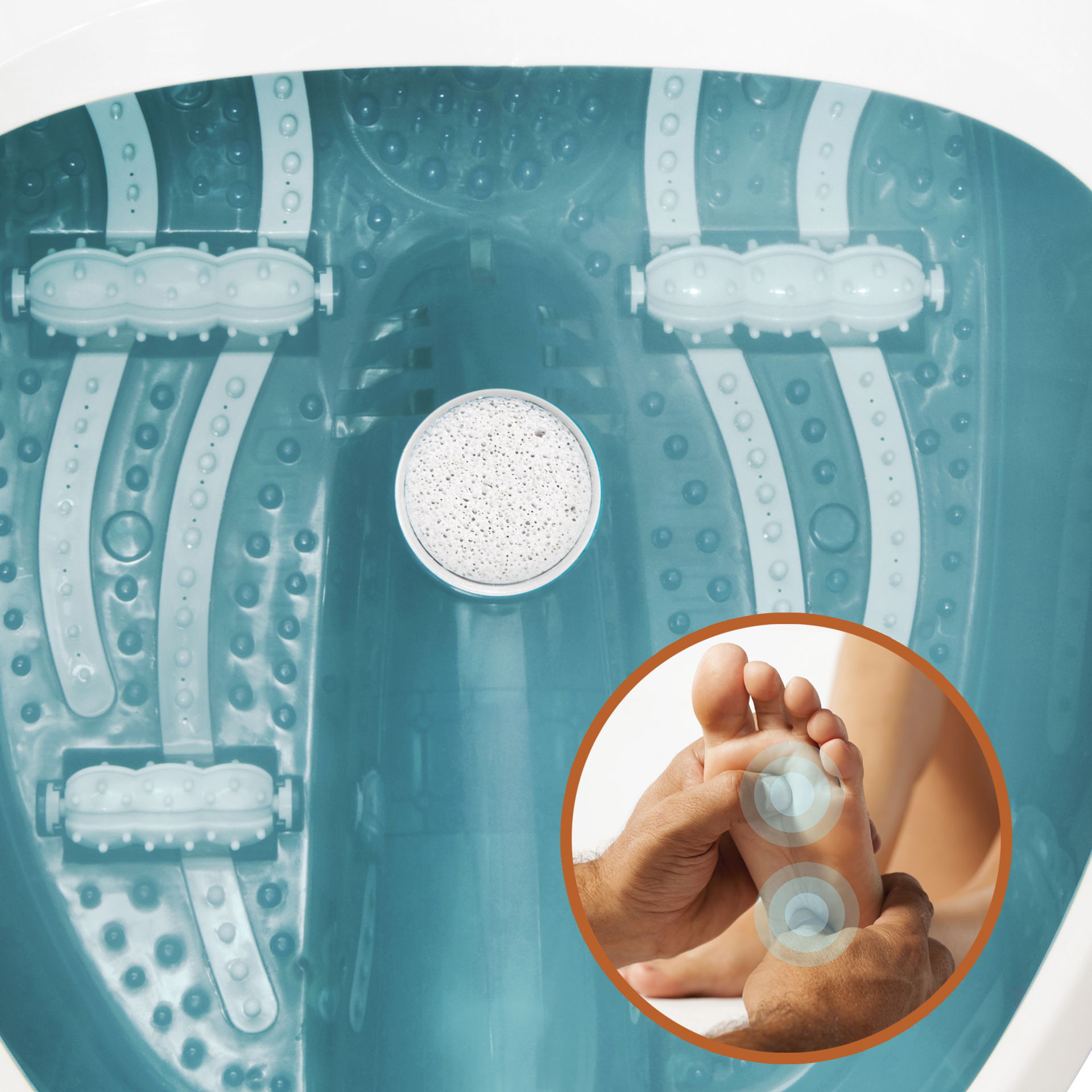 Sisäänrakennettu poretoiminto tekee kokemuksesta rentouttavan ja virkistävän, ja Keep Warm -teknologia ylläpitää veden lämpötilan 40–45 °C:ssa, kun täytät altaan lämpimällä vedellä. Saat vieläkin rauhoittavamman tunteen liu’uttamalla jalkojasi akupistehierontanystyröiden yli ja pyörittämällä jalkapohjia hierontarullien päällä syvän ja rentouttavan hieronnan saamiseksi.