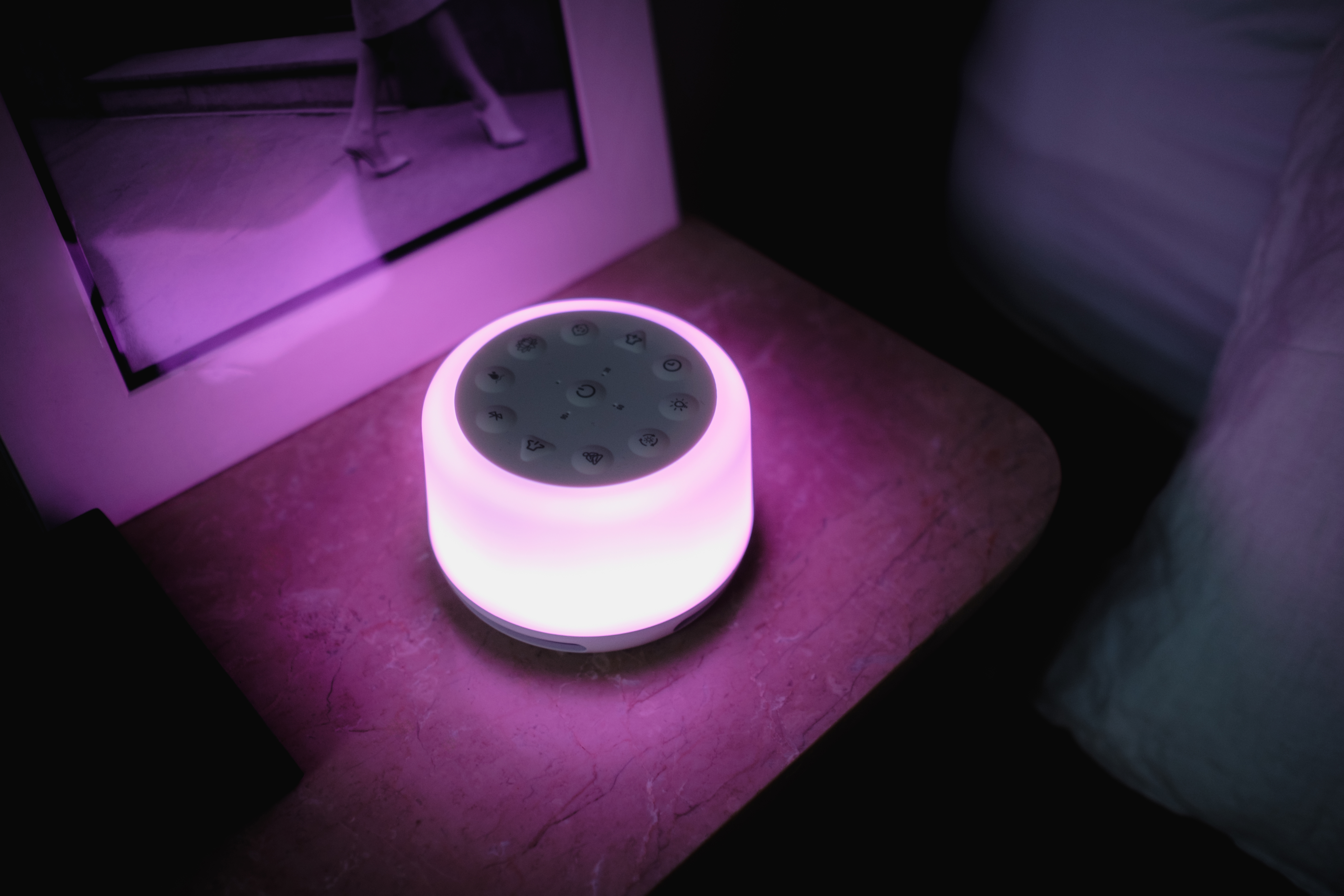 Paina yövalopainiketta ja nauti pehmeästä valkoisesta hehkusta, jossa on viisi kirkkaustasoa, tai selaa värispektriä ja valitse mielialaasi sopiva sävy.