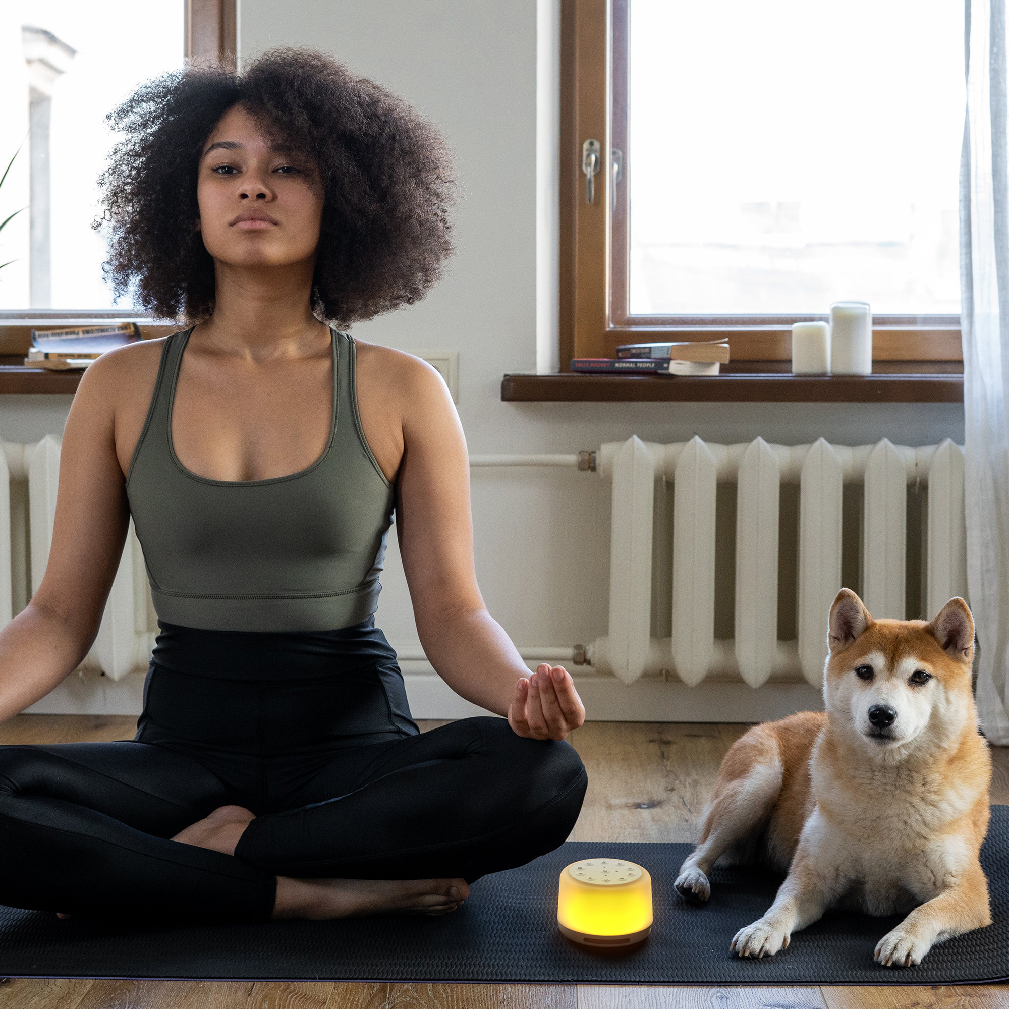 Valitse yksi seitsemästä meditaatioäänestä ja täytä tila tiibetiläisen äänimaljan, intiaanihuilun, rauhoittavien kellojen ja muiden harmonisten sävyjen äänillä – tai yhdistä puhelimesi ja kuuntele omaa soittolistaasi.