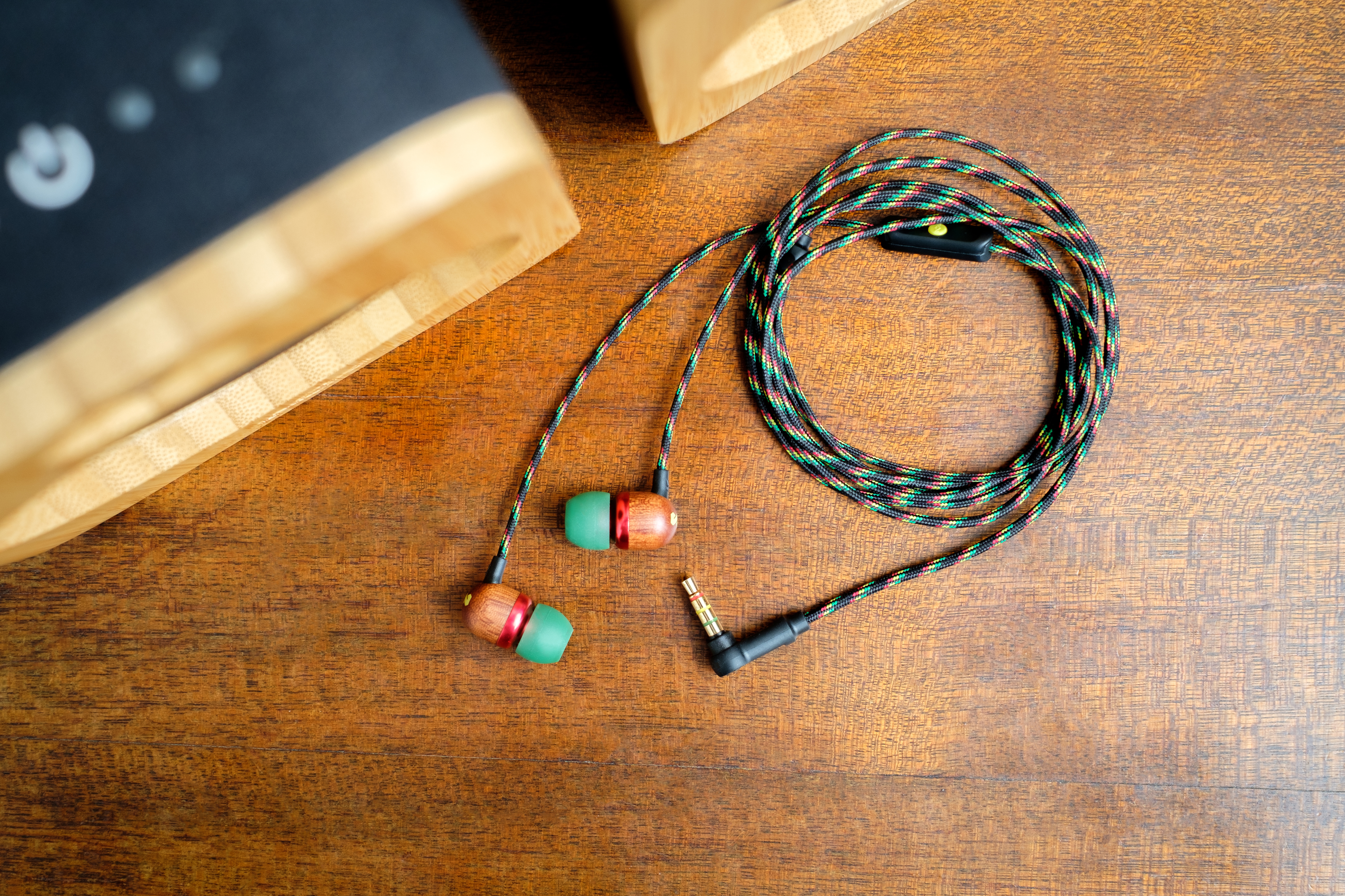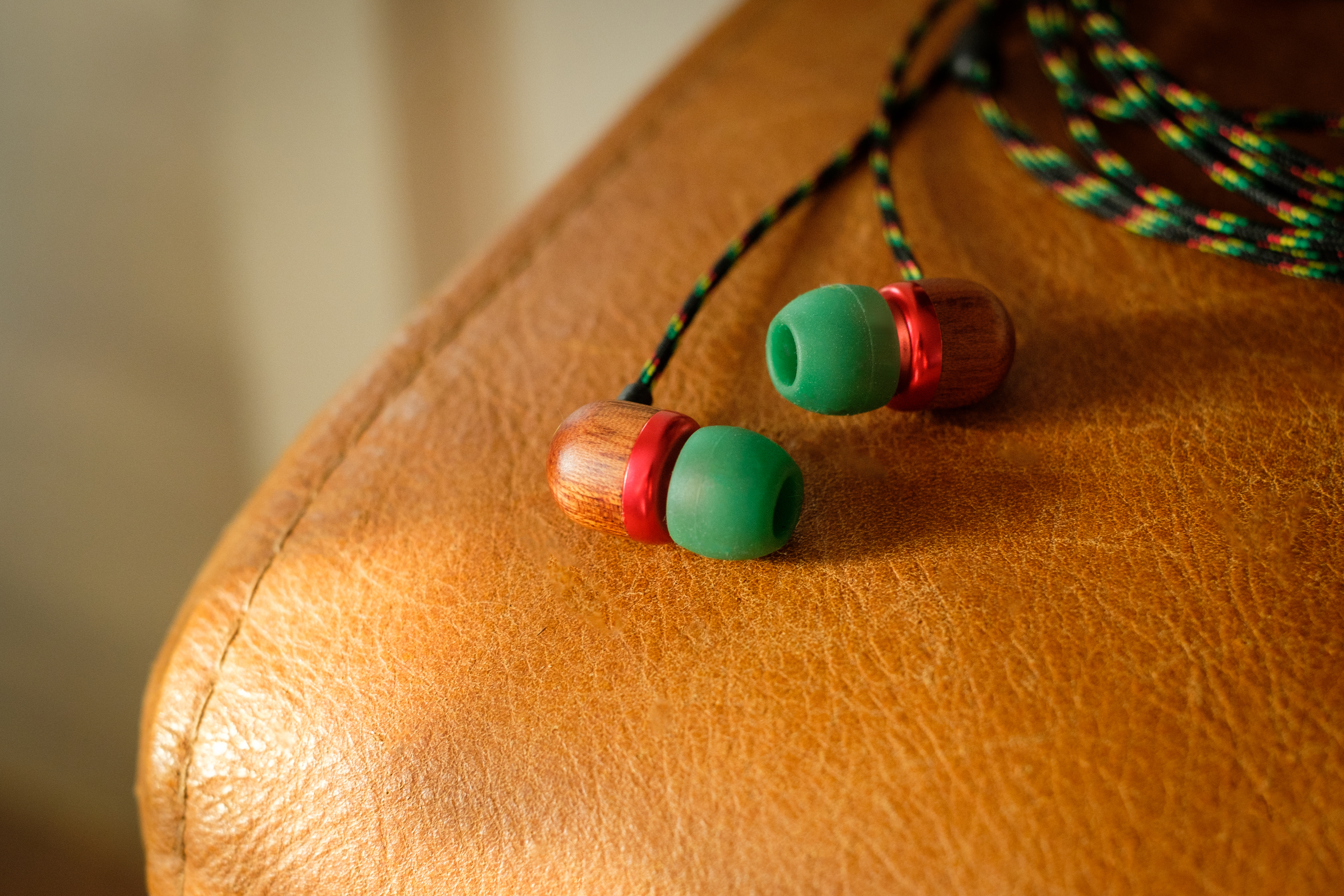 Smile Jamaica -in-ear-kuulokkeet on valmistettu FSC™-sertifioidusta puusta, kierrätettävästä alumiinista ja REGRIND™-silikonista.