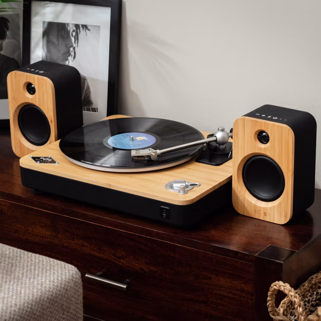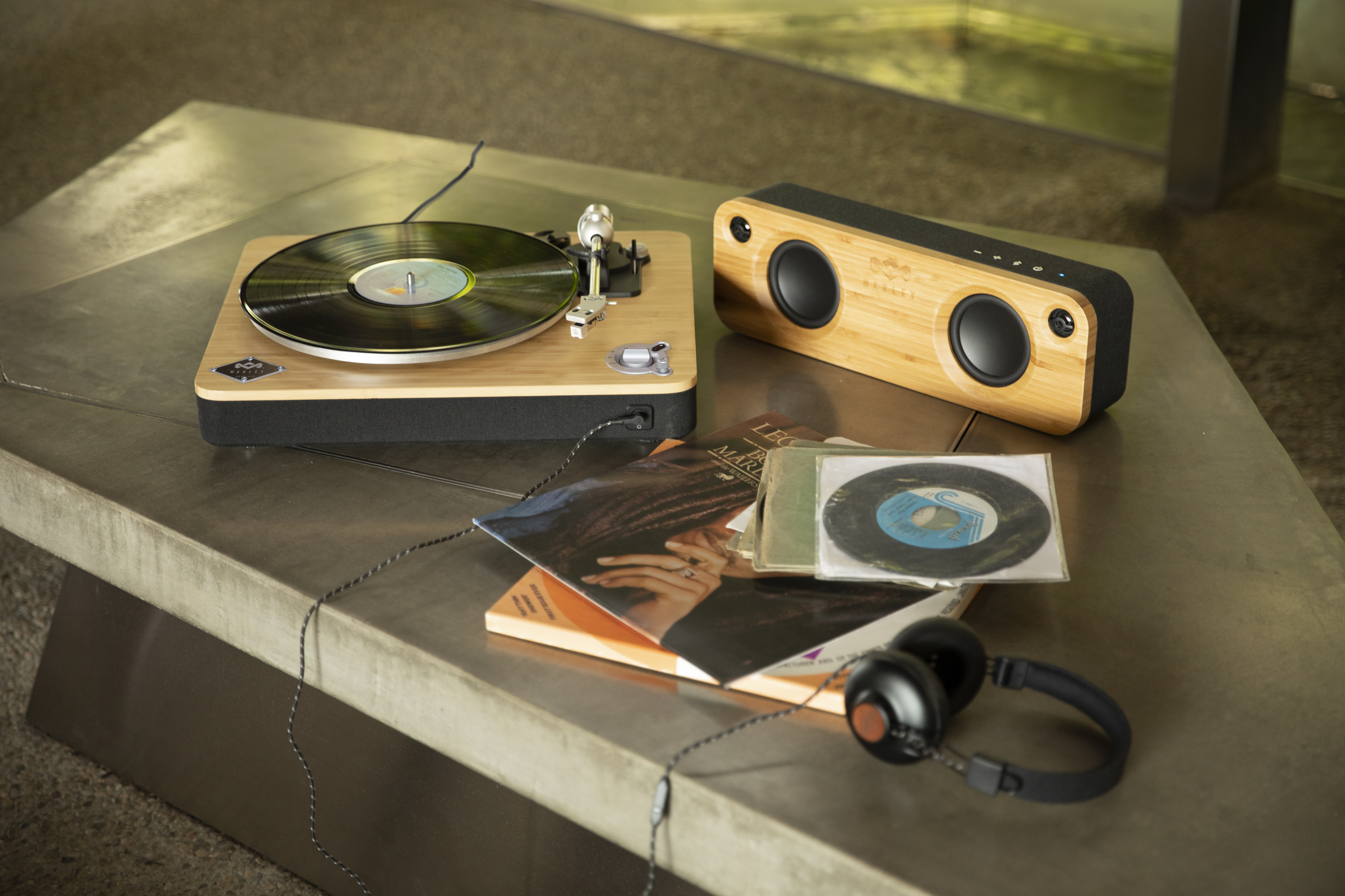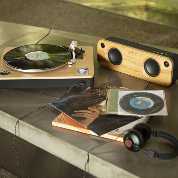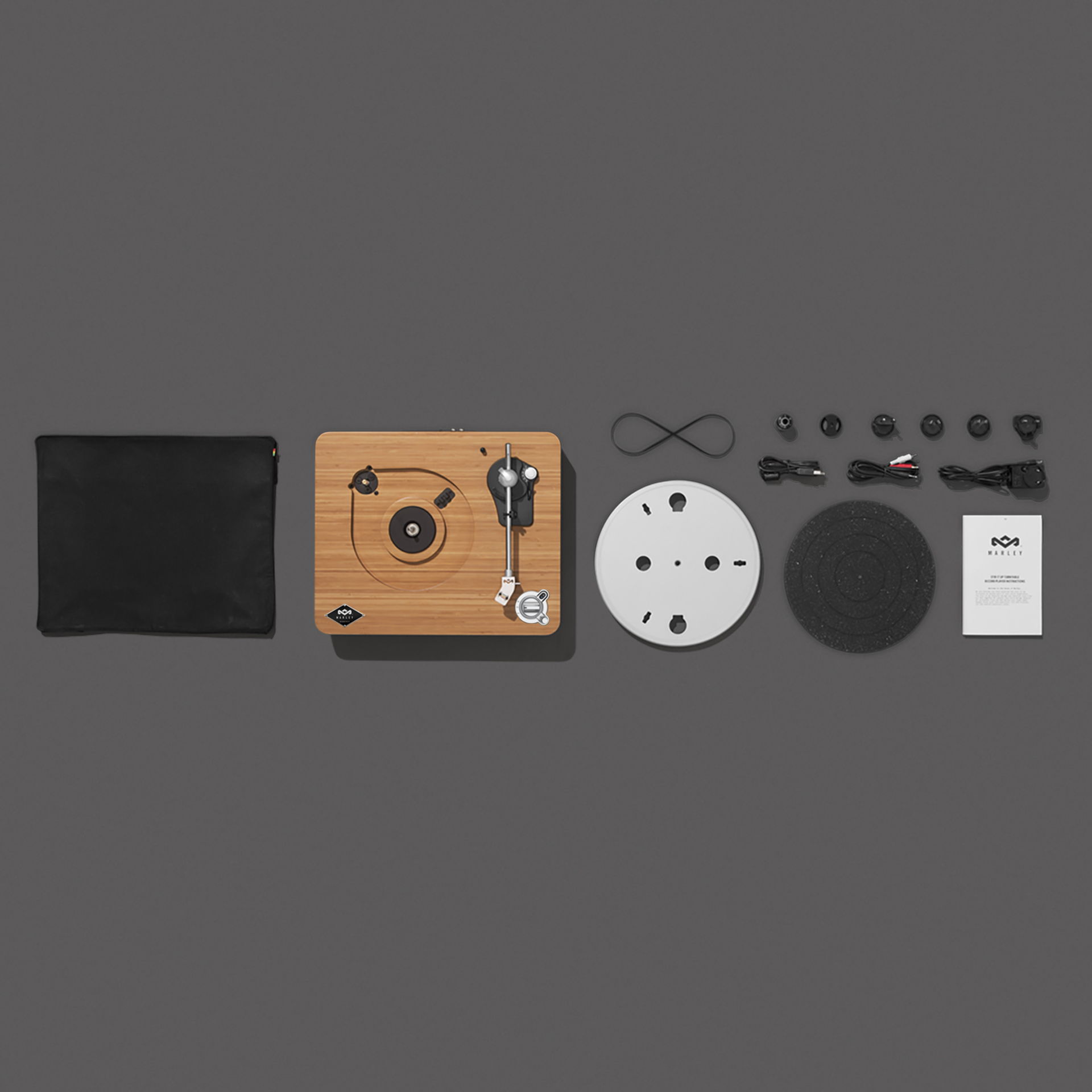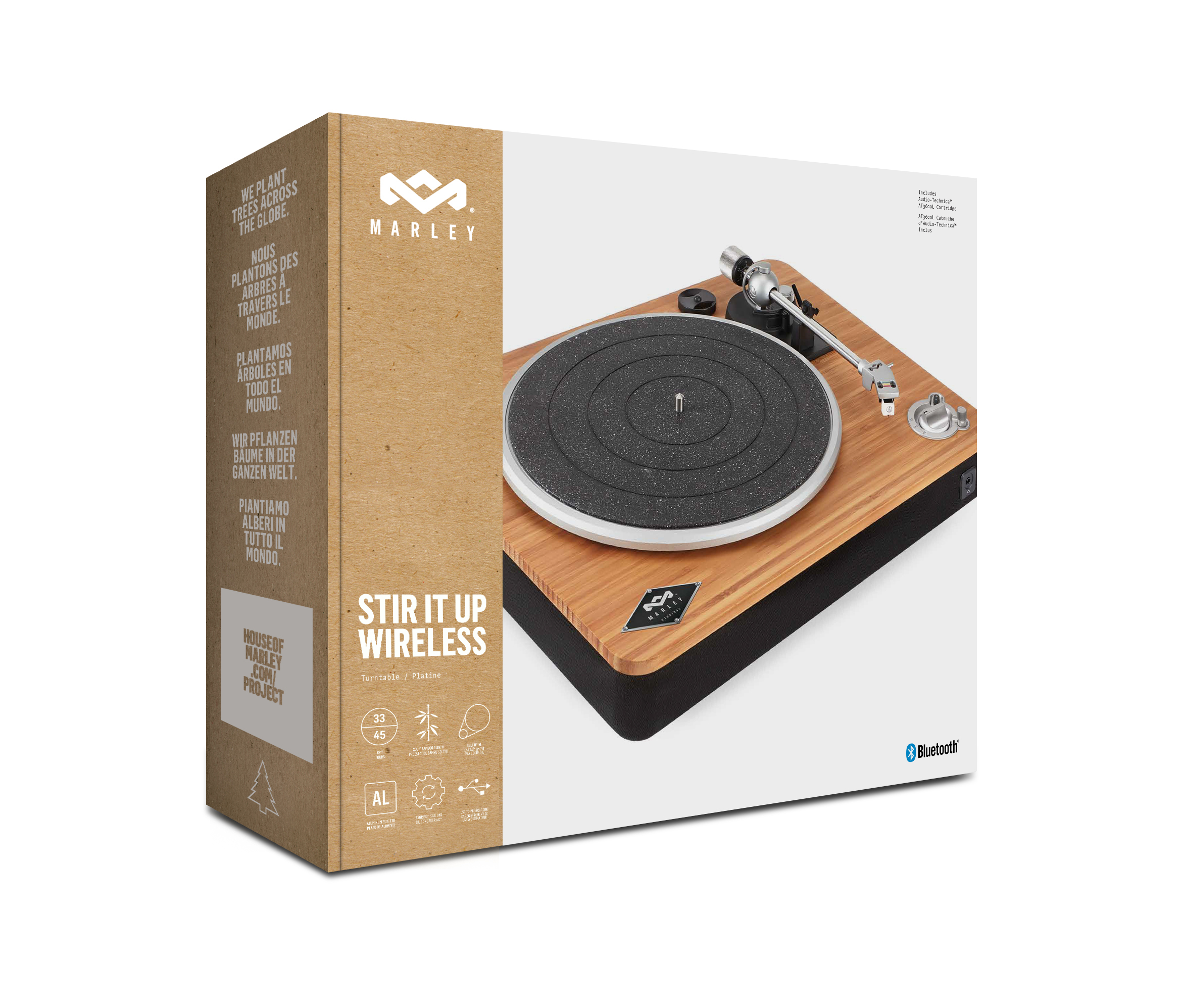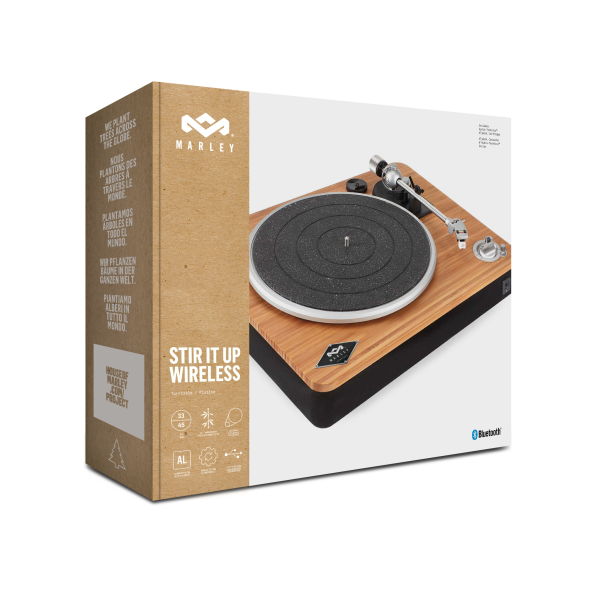 Stir It Up Wireless -levysoitin tarjoaa virtaviivaisen muotoilun, jossa on käytetty massiivista bambua, REGRIND™-silikonia, REWIND™-kangasta, kierrätysmuovia ja kierrätettävää alumiinia. Nauti klassisesta äänentoistosta, joka yhdistyy langattomasti mihin tahansa Bluetooth®-kaiuttimeen – levysoittimessa on myös sisäänrakennettu kytkettävä esivahvistin, joka takaa saumattoman yhteensopivuuden Marley-kaiuttimien ja kotivahvistimien kanssa. Stir It Up Wireless -levysoittimessa on USB-portti PC-tallennusta varten, RCA-lähtö sekä 3,5 mm kuulokeliitäntä.