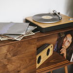Tämän levysoittimen minimalistinen ja virtaviivainen muotoilu tekee siitä näyttävän ja käytännöllisen sisustuselementin. Huomaat viimeistellyn suunnittelun yksityiskohdissa, kuten äänivarteen kaiverretussa Bob Marley -sitaatissa.