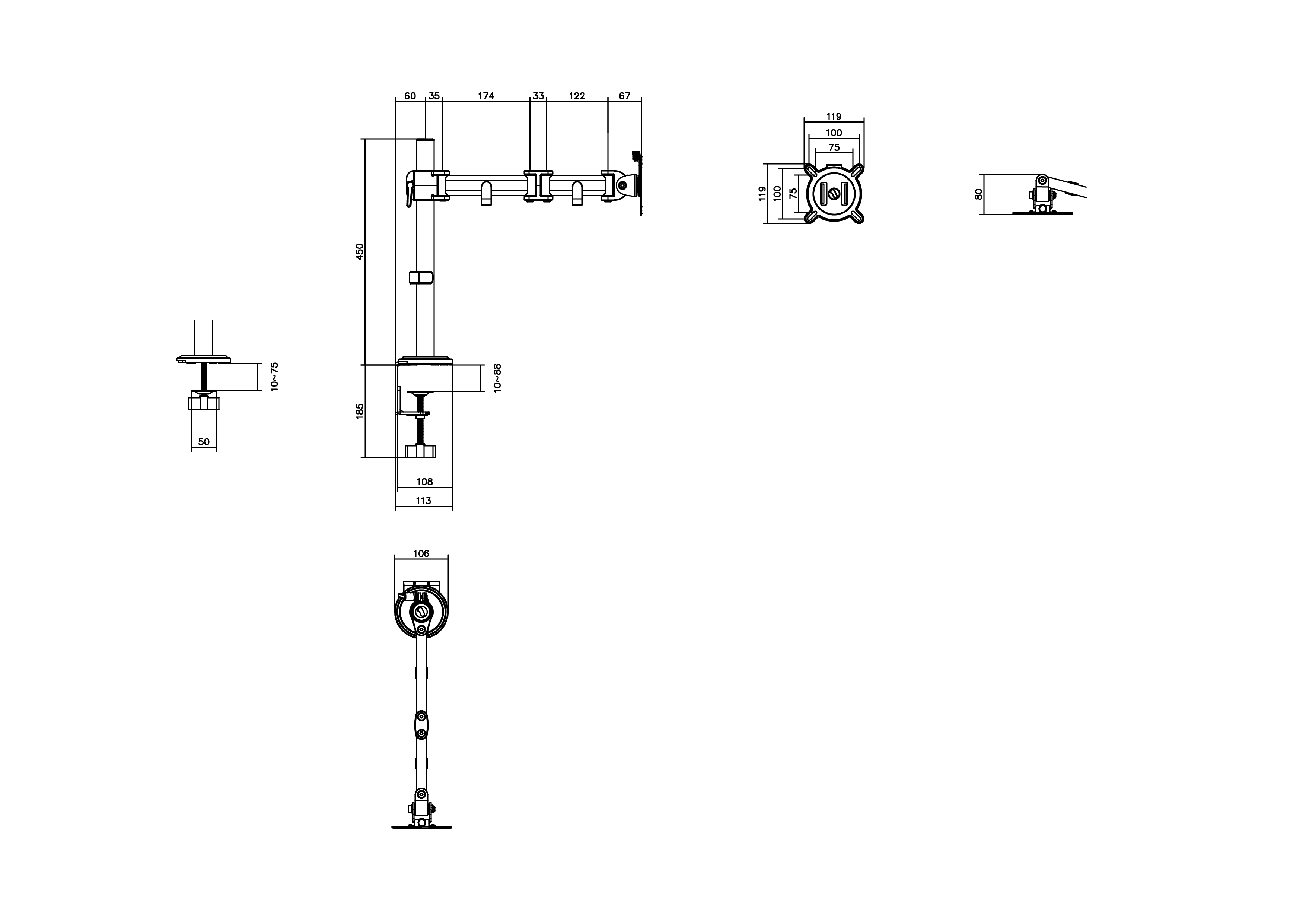 Nauti täydellisestä säädettävyydestä 360°:n kierityksellä, 180°:n kääntämisellä ja 90°:n kallistuksella, mikä takaa täydellisen työpöydän kokoonpanon maksimaalista mukavuutta ja tuottavuutta varten.
