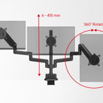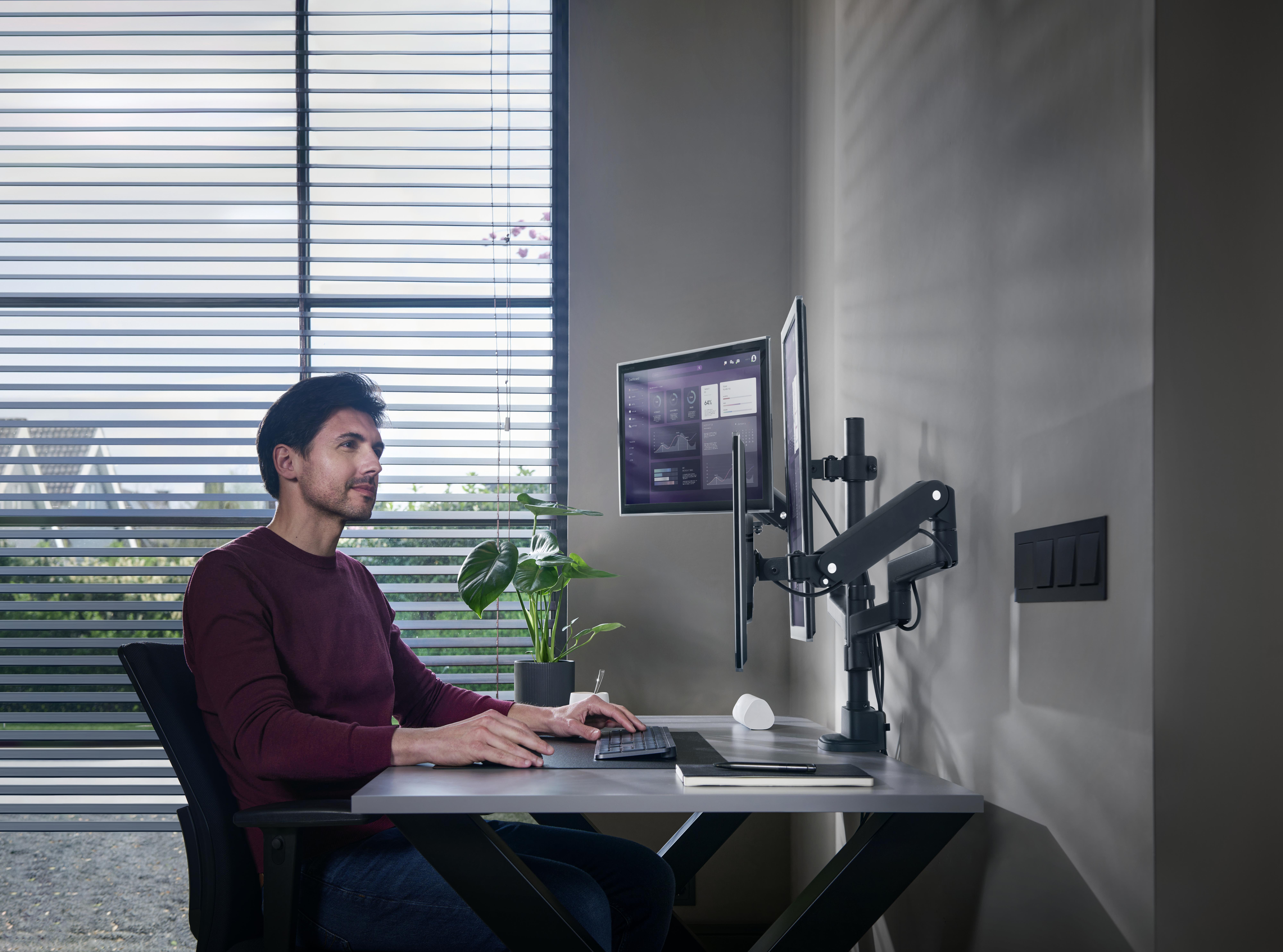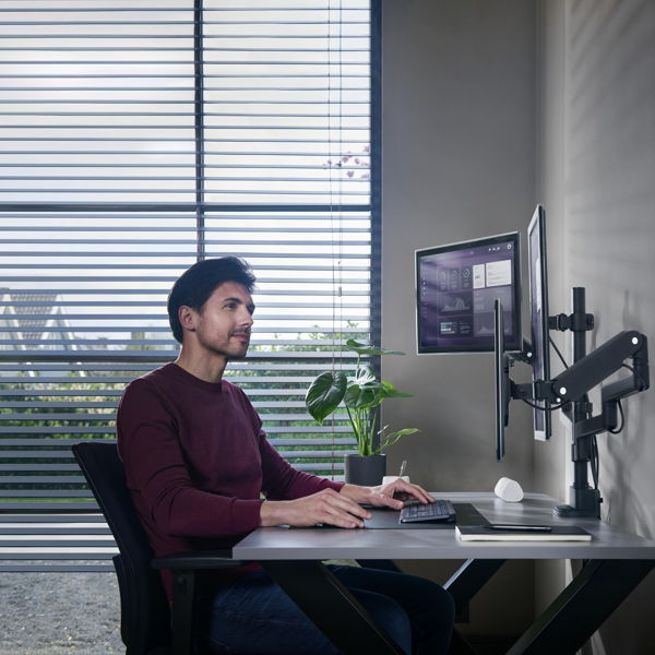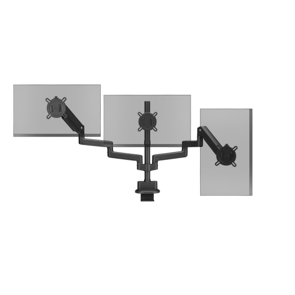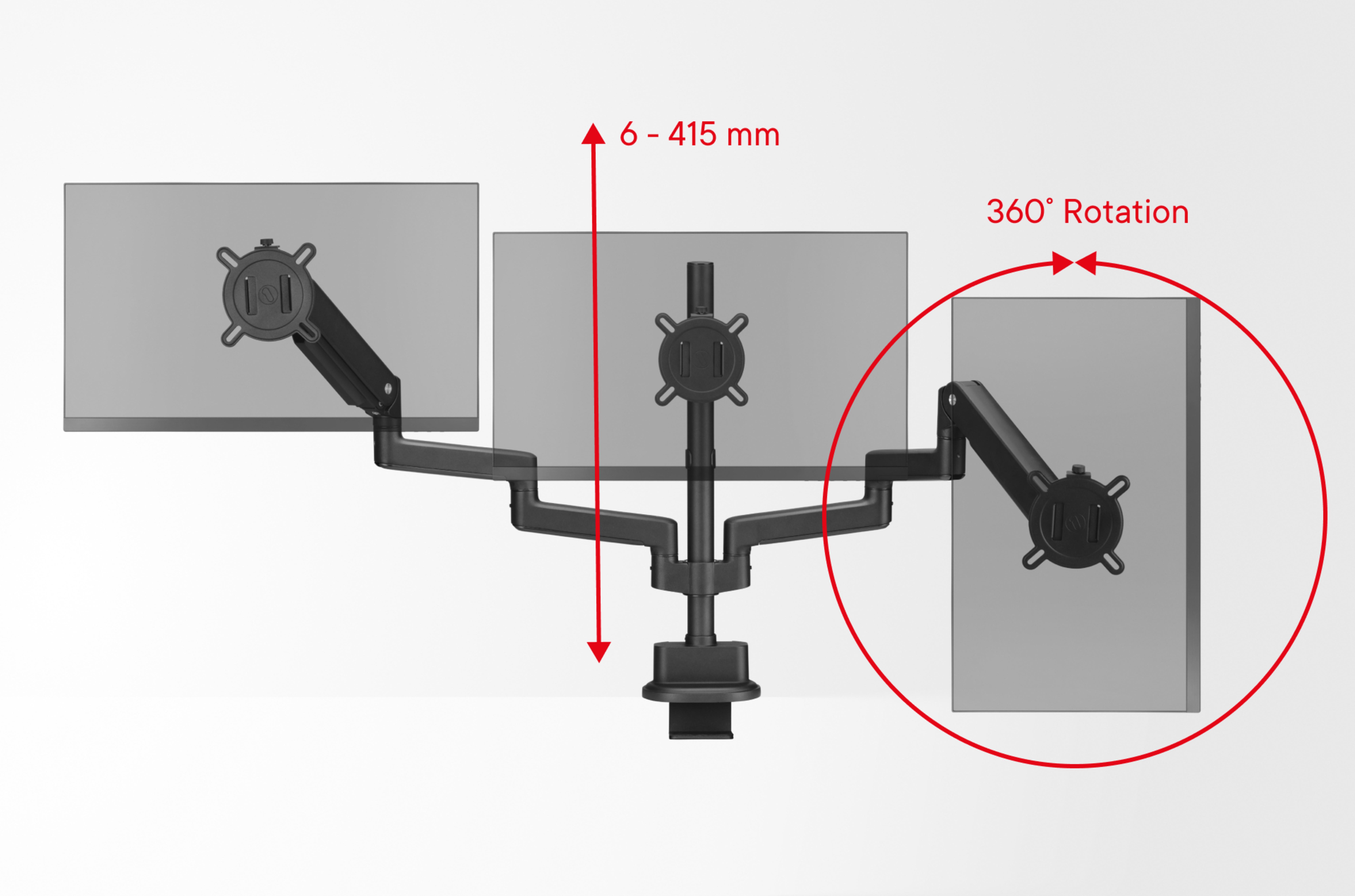Voit kiinnittää jopa kolme näyttöä vierekkäin, vapauttaen arvokasta pöytätilaa ja luoden siistin, järjestelmällisen työympäristön. Ergonominen säätö auttaa vähentämään niska- ja silmäkuormitusta, kun saat näytön täydelliseen asentoon.