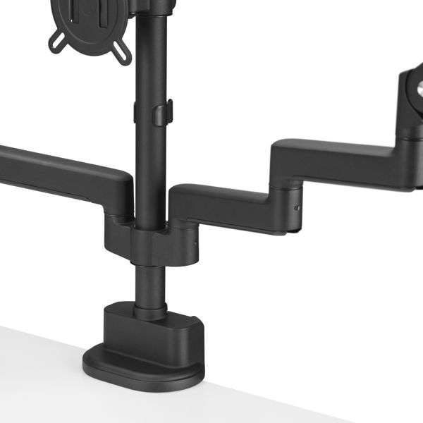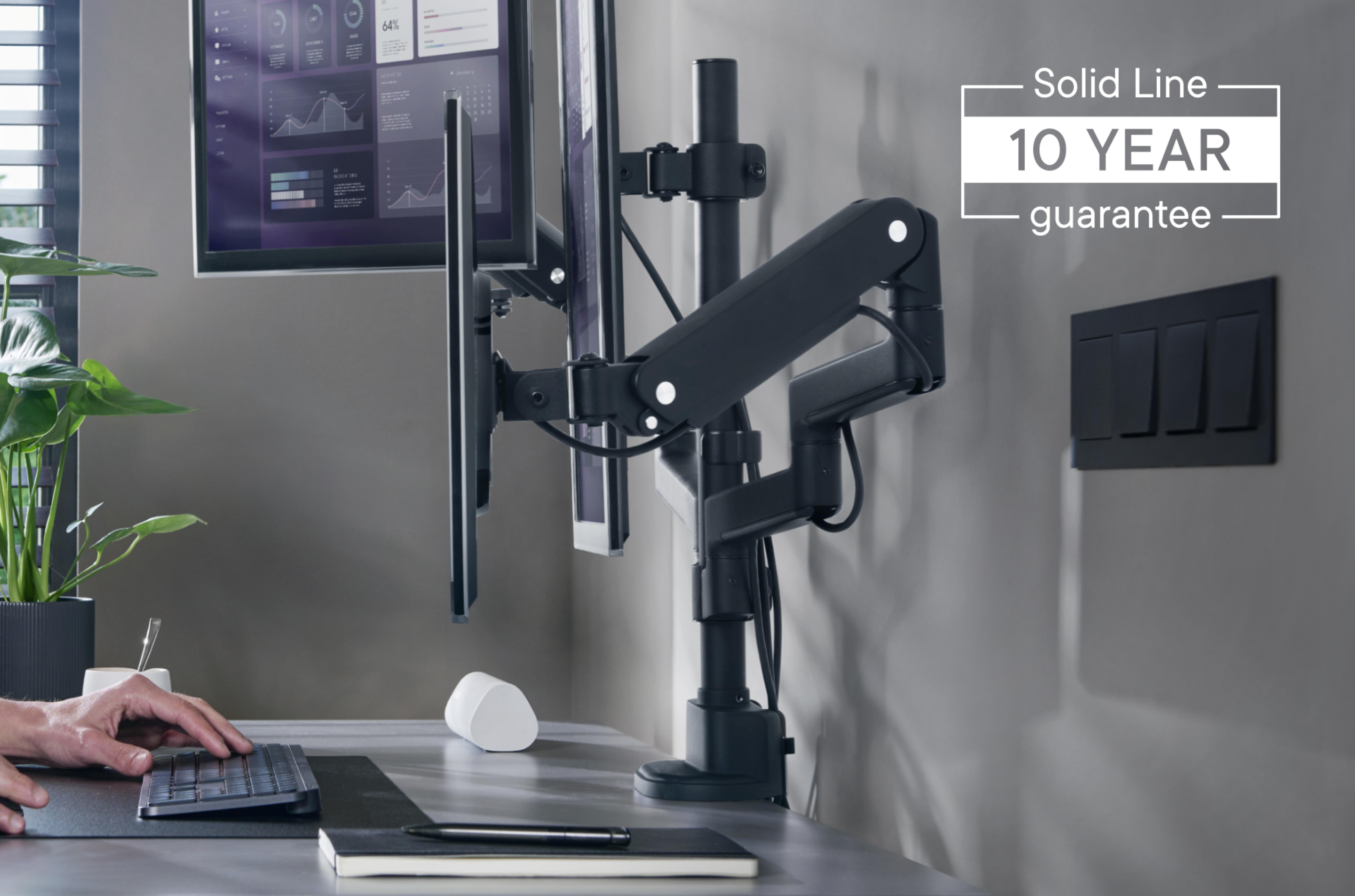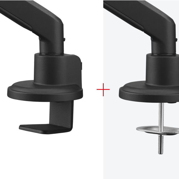 Etkö ole varma sopiiko näytönvarsi pöytääsi? Ei huolta – puristinkiinnityksen tai läpivientikiinnityksen ansiosta varmistat yhteensopivuuden ja tukevan kiinnityksen, joka pitää näytön turvallisesti paikoillaan.