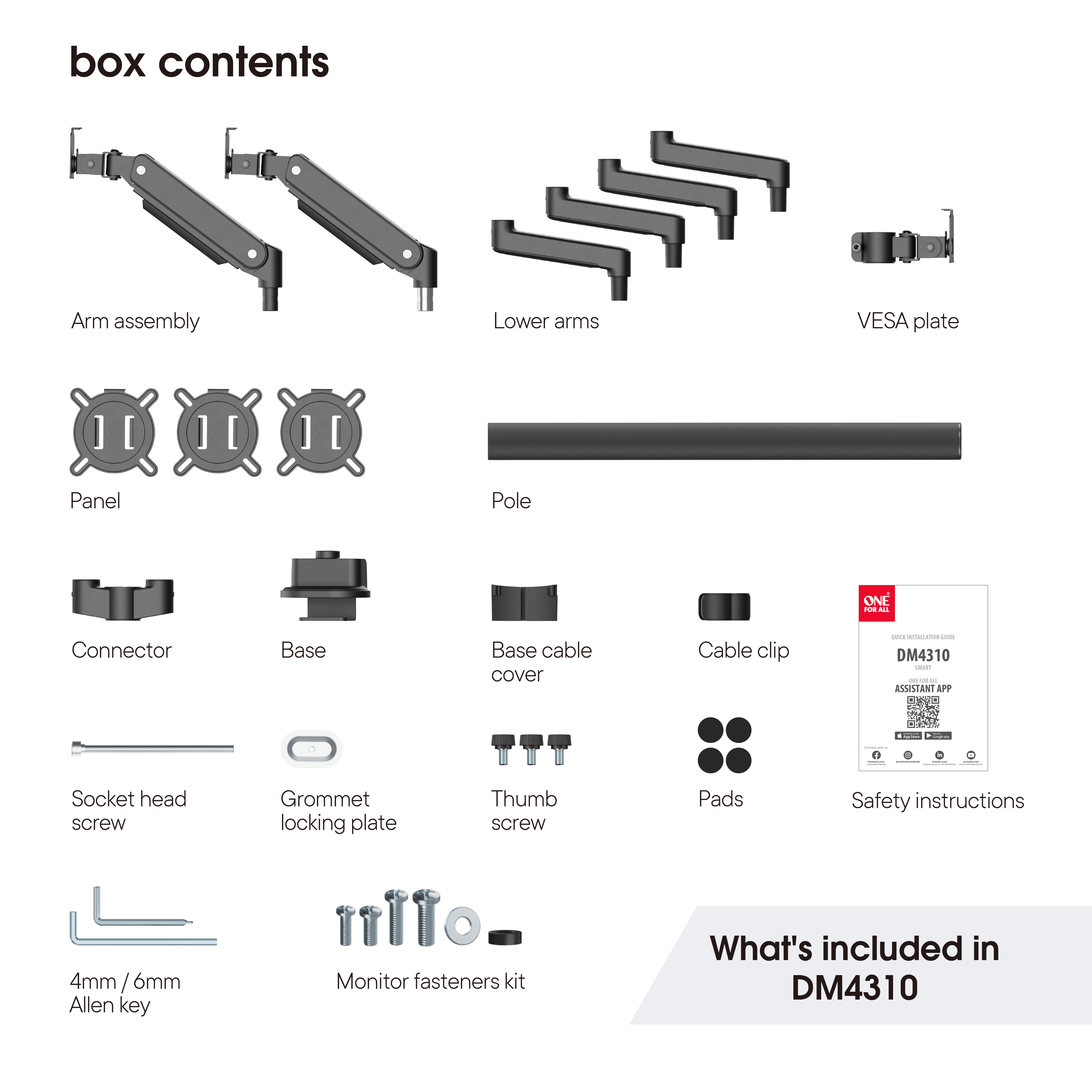 Innovatiivisen One For All -suunnittelun ansiosta asiantuntijamme valmistavat korkealaatuisia, modernisti muotoiltuja monitorivarsia, joilla on 10 vuoden takuu. Tuotteet on testattu huolellisesti, jotta näyttösi pysyy turvallisesti ja tukevasti paikoillaan.