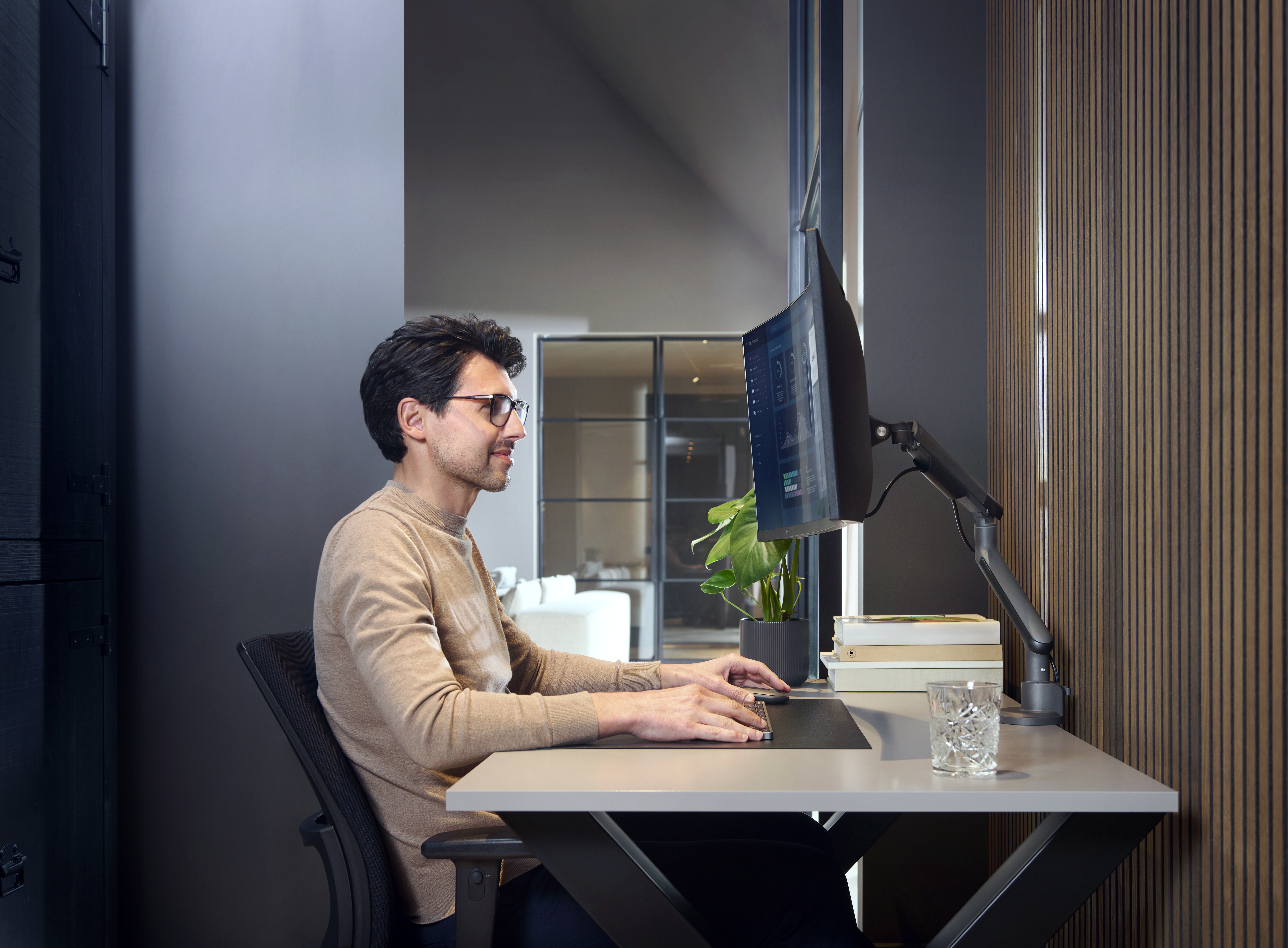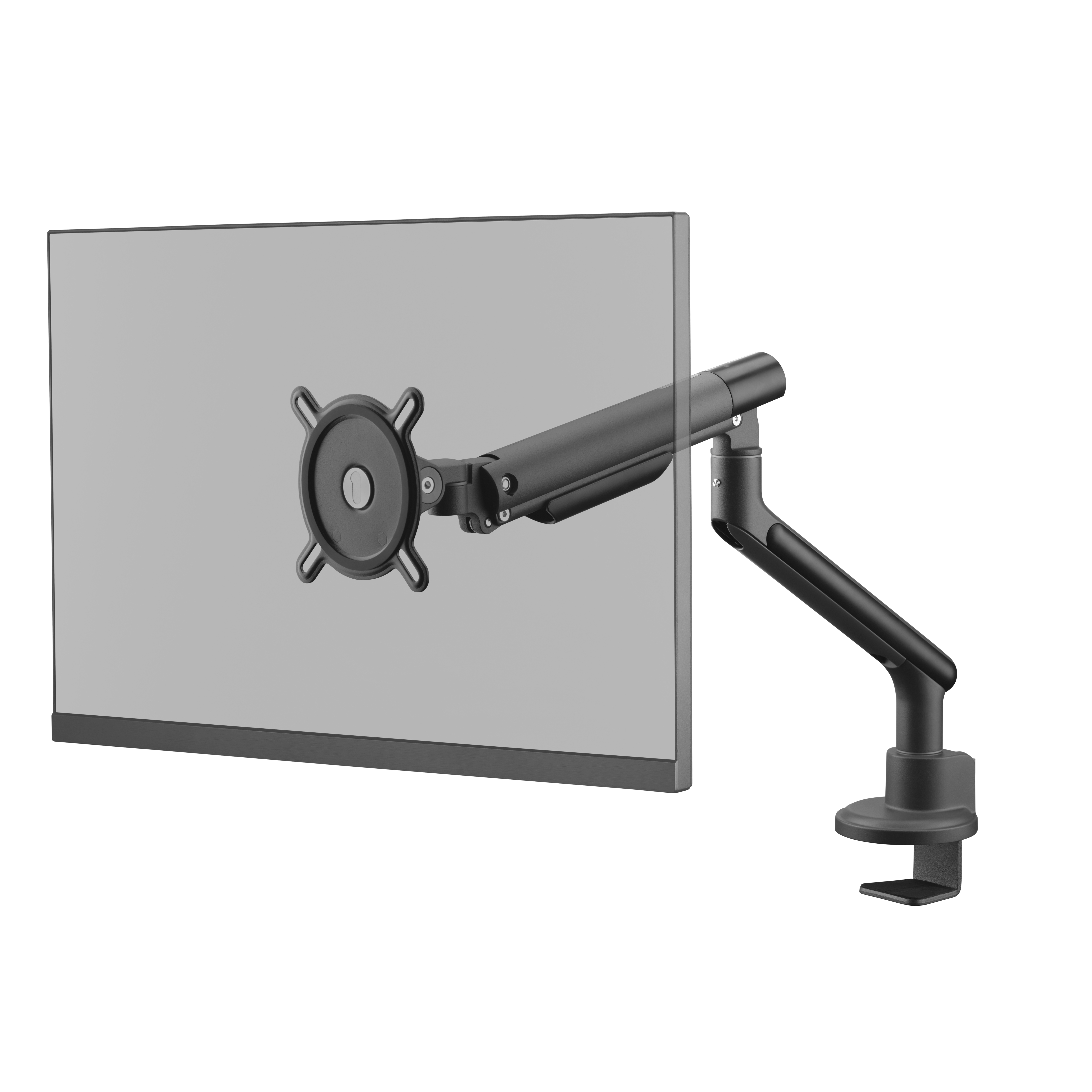 Monitorivarren tyylikäs muotoilu tuo työtilaasi nykyaikaista estetiikkaa. Se varmistaa, että monitorisi pysyy turvallisena ja vakaana, mutta se myös maksimoi työpöytätilan ja tarjoaa tilaa muille tärkeille tarvikkeille.