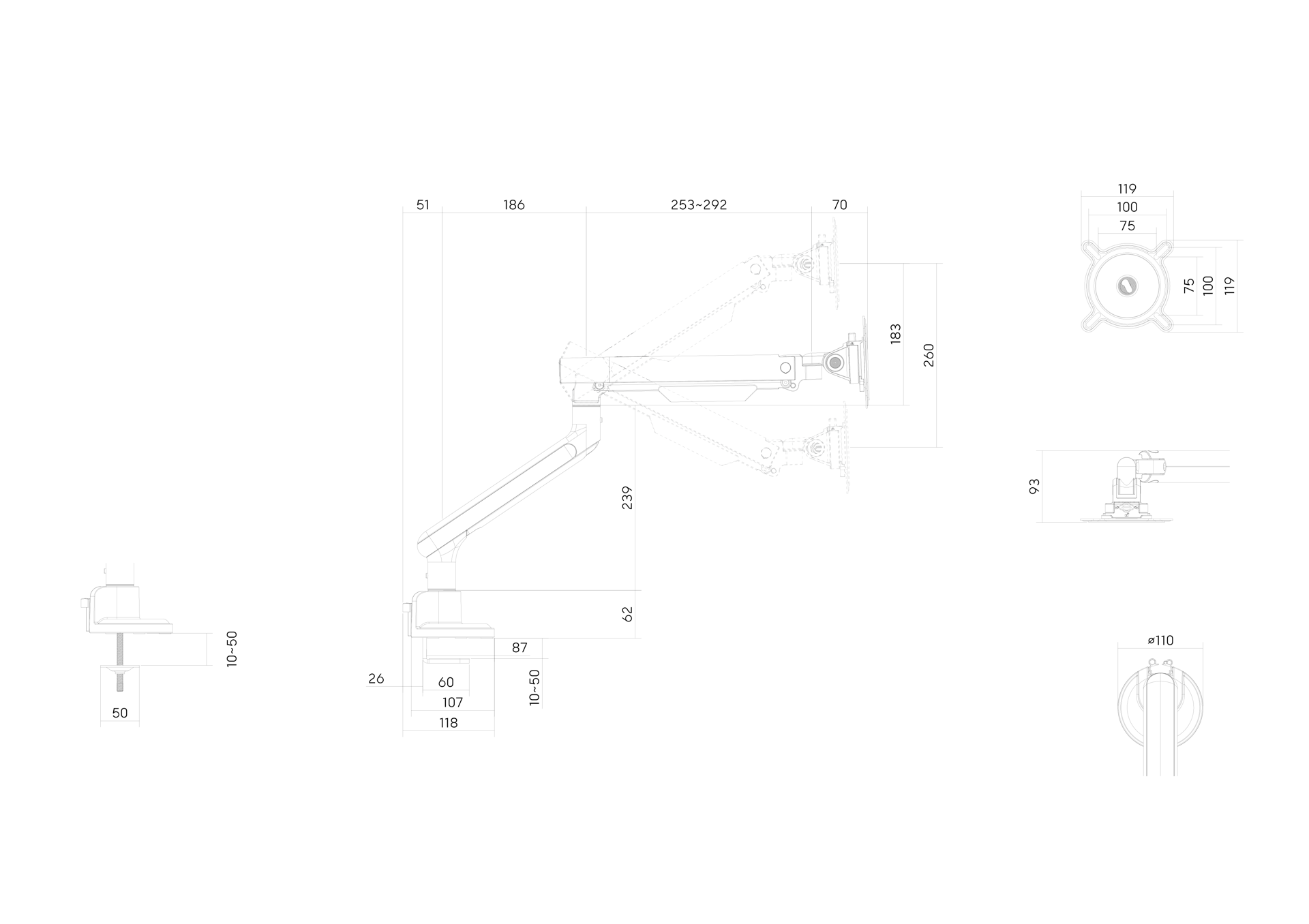 Etkö ole varma, sopiiko monitorivarsi työpöydällesi? Älä etsi kauempaa. Monipuolinen puristus- tai läpivienti-kiinnitysmenetelmämme takaa täydellisen istuvuuden, jolloin monitorisi pysyvät tukevasti kiinni missä tahansa pöydässä. Nauti mielenrauhasta ja vapaasta työtilasta luotettavan ja mukautuvan kiinnitysratkaisumme avulla.