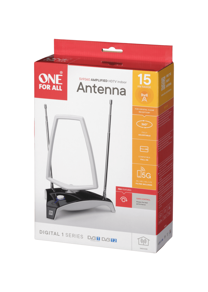 - One For All SV9360 sisäantennilla pääset nauttimaan häiriöttömästä televisiokuvasta lähes missä vaan