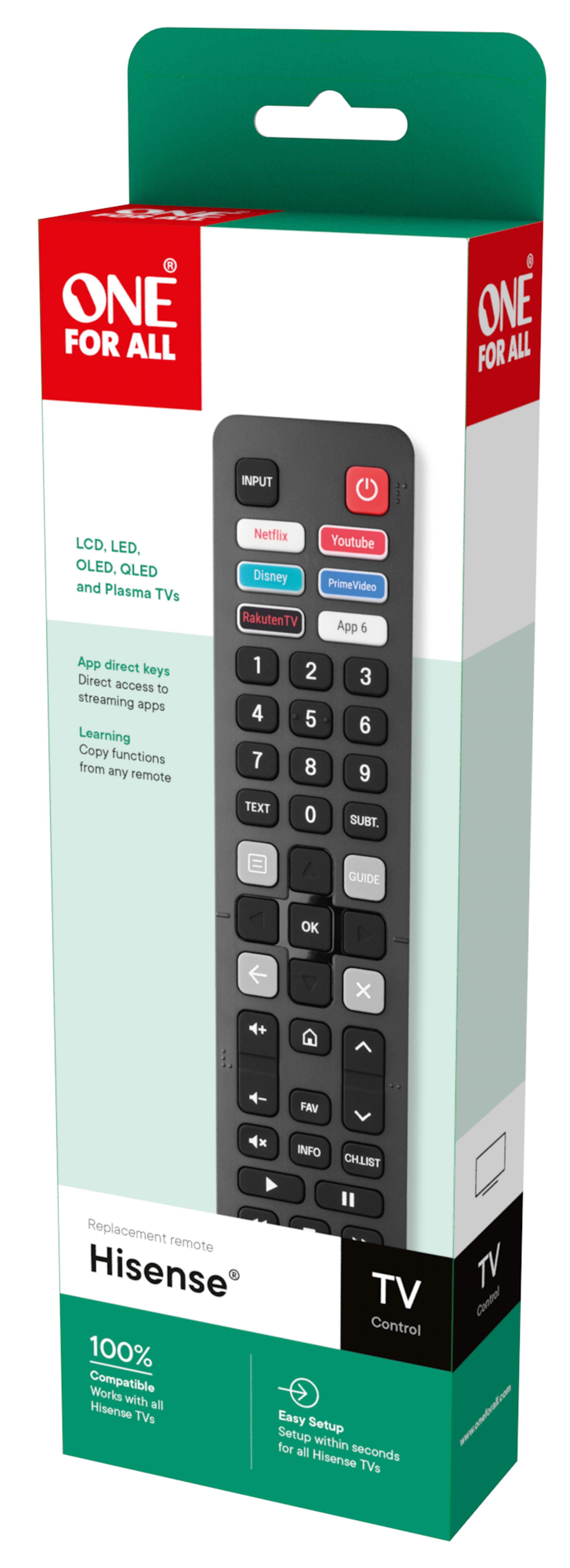 One For All URC4916 Yleiskaukosäädin Hisense televisioille