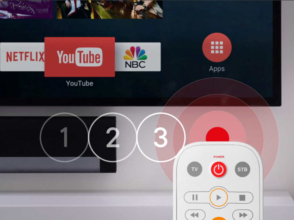 Liitä soundbar tai äänilaite nopeasti tällä kaukosäätimellä. Noudata neljää yksinkertaista vaihetta äänilaitteen nopeaan asennukseen.