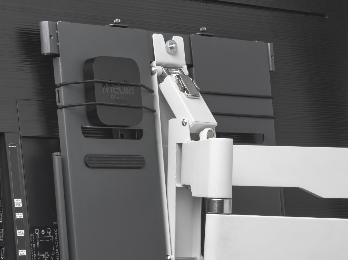 Säilytä mediasoittimesi, kiintolevyasemasi tai (peli)ohjaimesi helposti poissa näkyvistä, joten ulkoasu pysyy siistinä.