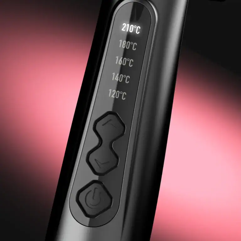 - Säädettävä lämpötila 120 °C–210 °C – valmis muotoiluun sekunneissa