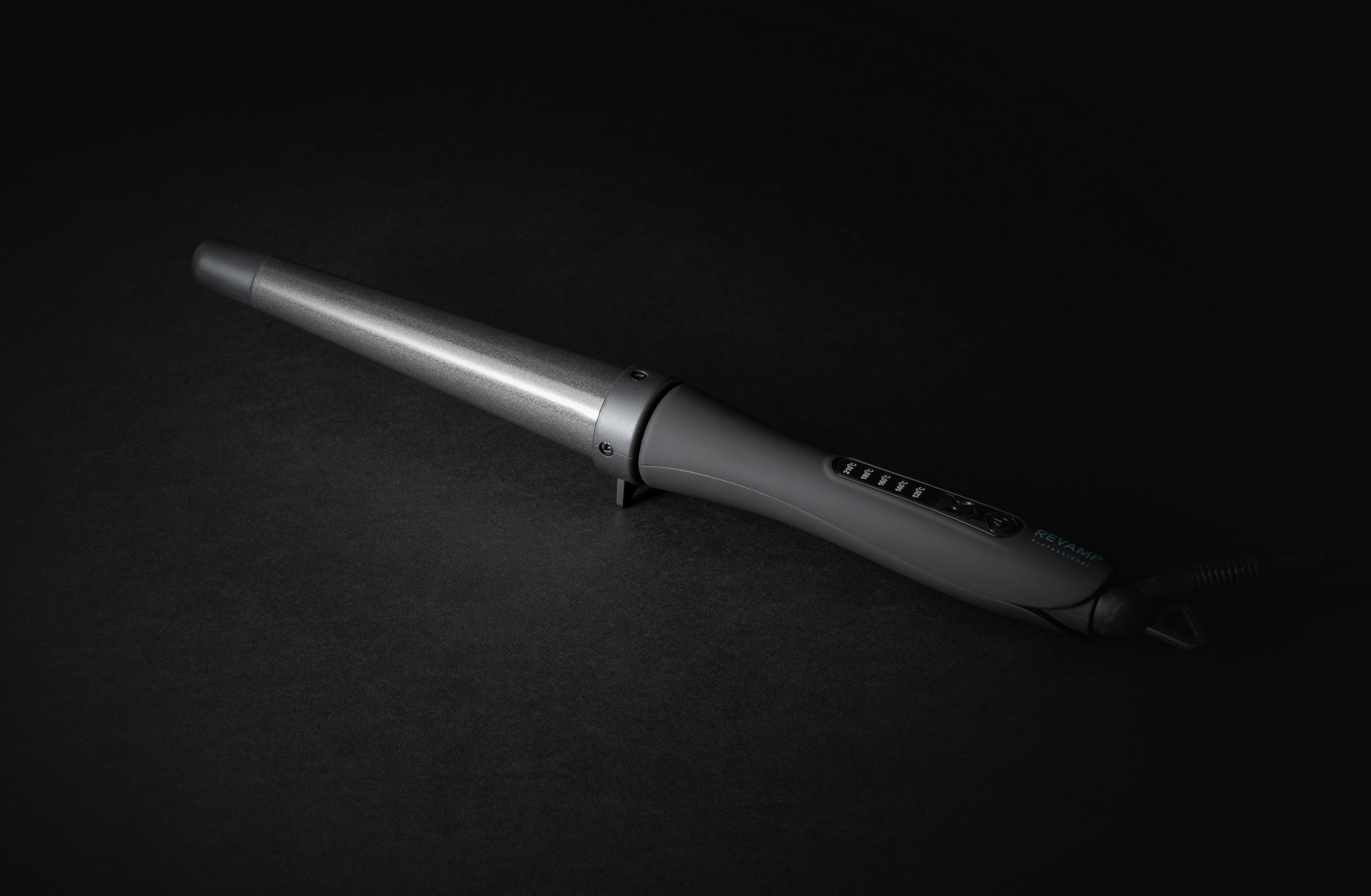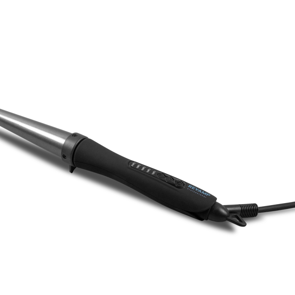 Anna kiharoille ja aalloille hieman lisää potkua REVAMP Big Curling Wand -kihartimella. 32–19 mm kartiomainen keraaminen varsi mahdollistaa täydellisesti muotoillut, vapaasti laskeutuvat kiharat vaivattomasti.