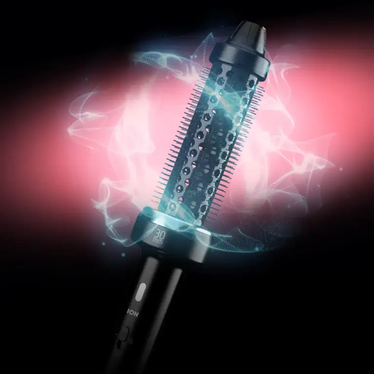 Joustavat 5 mm nailonharjakset nostavat jokaisen hiussuortuvan tyvestä ilman takertumisen, nykimisen tai sotkeutumisen riskiä – lopputuloksena on lisää volyymia, joka kestää koko päivän. Innovatiivinen ionisuihkuteknologia vapauttaa jopa miljoona negatiivista ionia/cm³, tuottaen tuuhean ja virheettömän lopputuloksen, jossa on lisää vartta ja kimmoisuutta. Parasta? Saat kaiken tämän vähällä vaivalla.