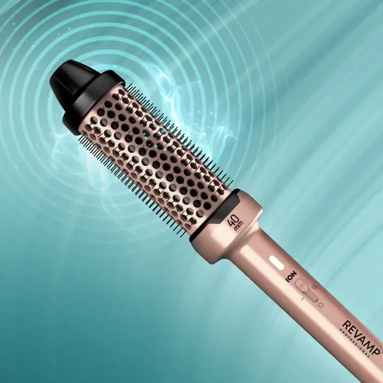 REVAMP 40 mm Big Hot Brush on innovatiivisesti muotoiltu nopeaan ja helppoon hiustenmuotoiluun – se lisää volyymia hiuksen ja muotoilee latvat vaivattomasti.