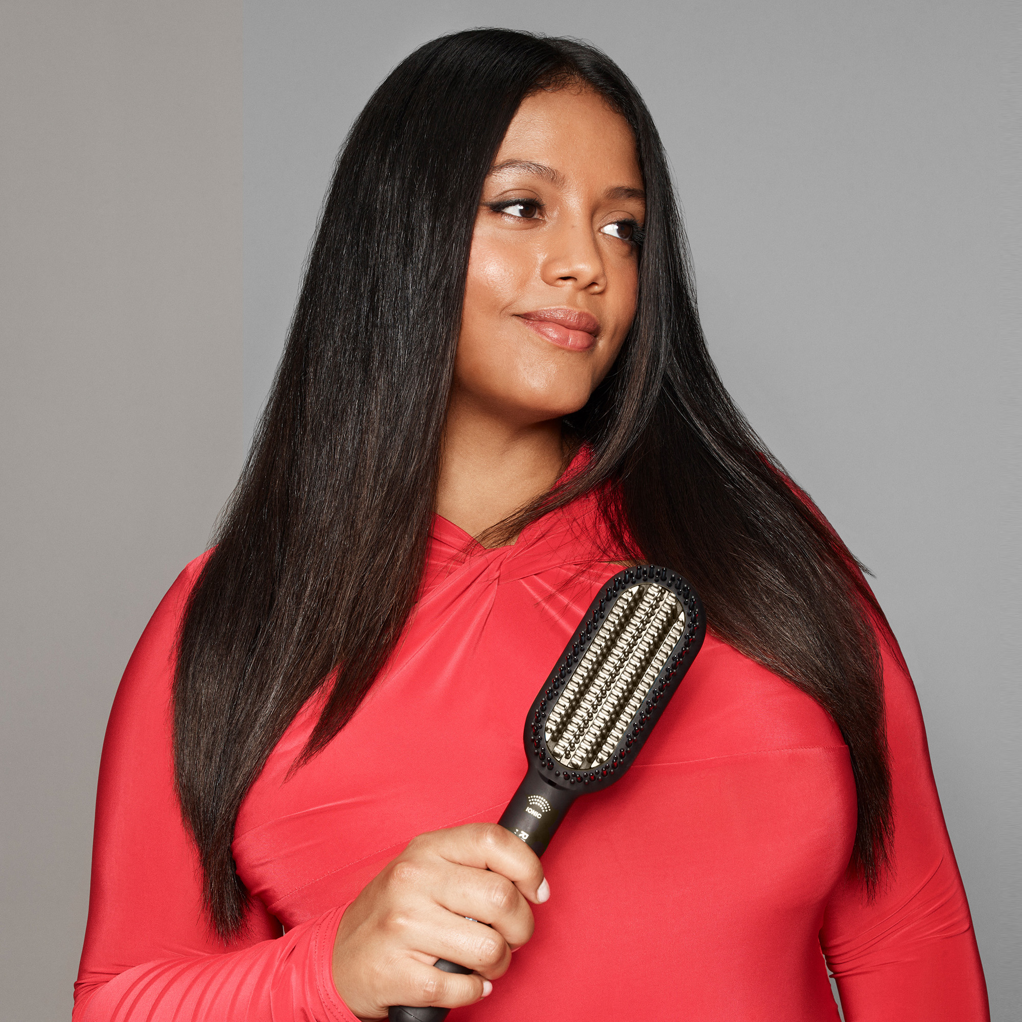 Tällä ainutlaatuisella keraamisella suoristavalla suoristusharjalla muotoilu on yhtä helppoa kuin hiusten harjaaminen. DeepForm-teknologian extra-pitkät viileät harjakset selvittävät hiukset tehokkaasti, kun taas kuumat keraamiset harjakset silottavat ja viimeistelevät lopputuloksen. Saat täydellisen sileän tyylin vain muutamalla vedolla.