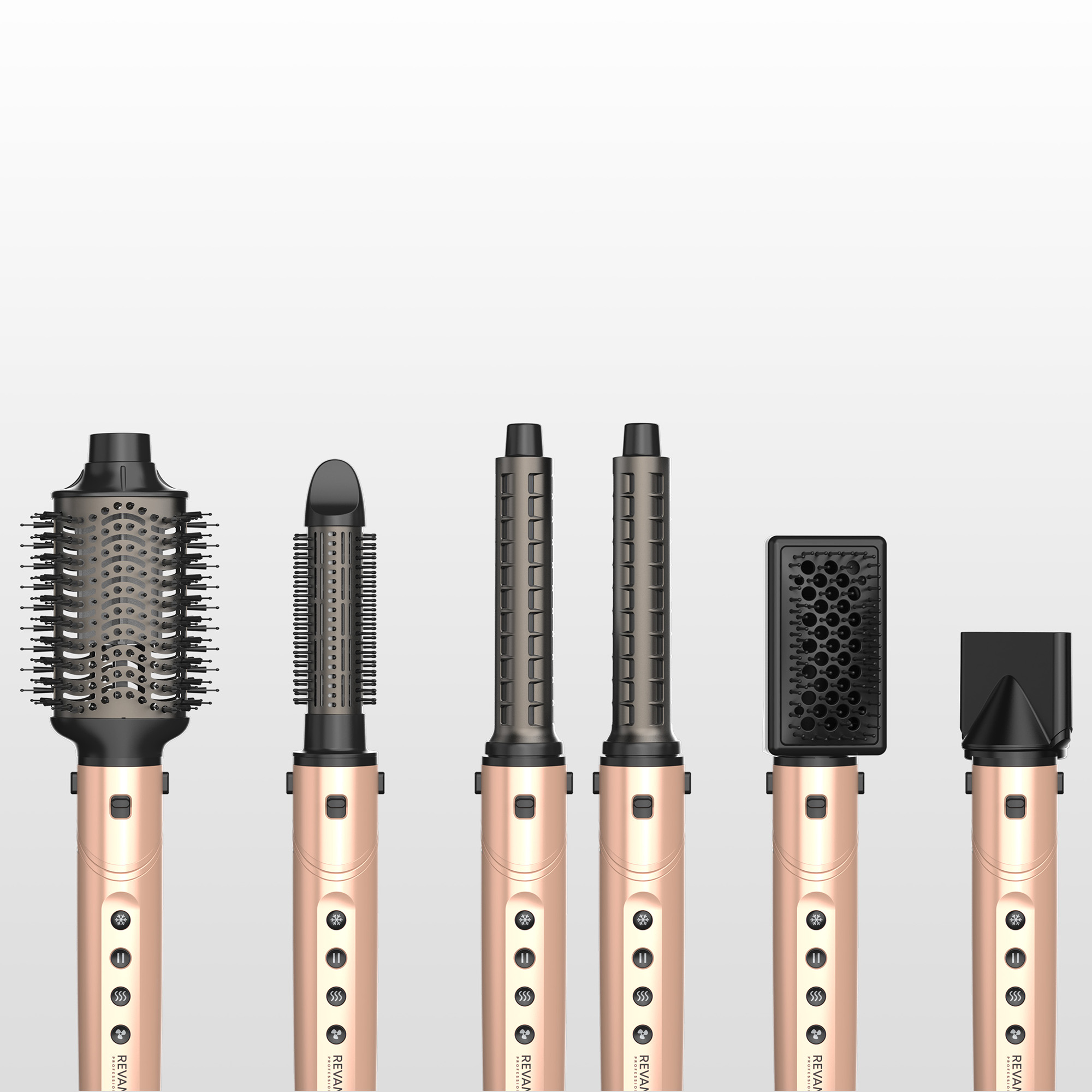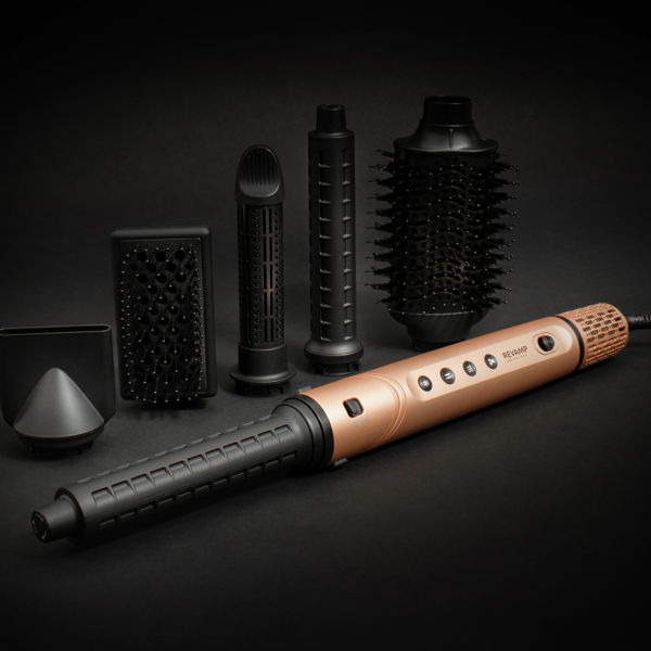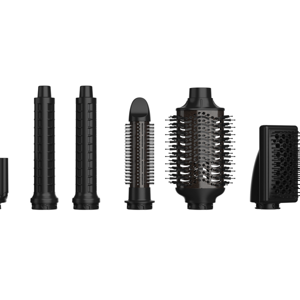 Kuuden vaihtopään ansiosta – mukaan lukien kaksi älykästä, monisuuntaista Auto Air Curl -kiharrinta, jotka kietovat hiukset automaattisesti – muotoilija auttaa luomaan pehmeitä, muotoiltuja kiharoita, erittäin suoran lopputuloksen tai lisää volyymia ja ilmavuutta. Valinta on sinun.