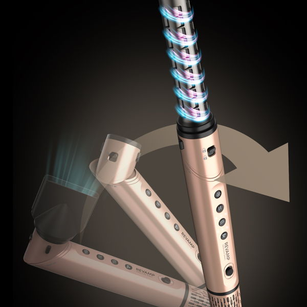 Nauti nopeammasta kuivauksesta ja pehmeämmästä, erittäin kiiltävästä lopputuloksesta REVAMPin aktiivisen positiivisen ja negatiivisen ioniteknologian ansiosta (jopa 150 miljoonaa ionia/cm³). Positiiviset ionit avaavat hiussuomut lisäten volyymia ja auttaen kosteuden imeytymisessä, kun taas negatiiviset ionit sulkevat hiussuomut lukiten kosteuden. Lopputuloksena on sileämmät, terveemmän näköiset ja helpommin muotoiltavat hiukset.