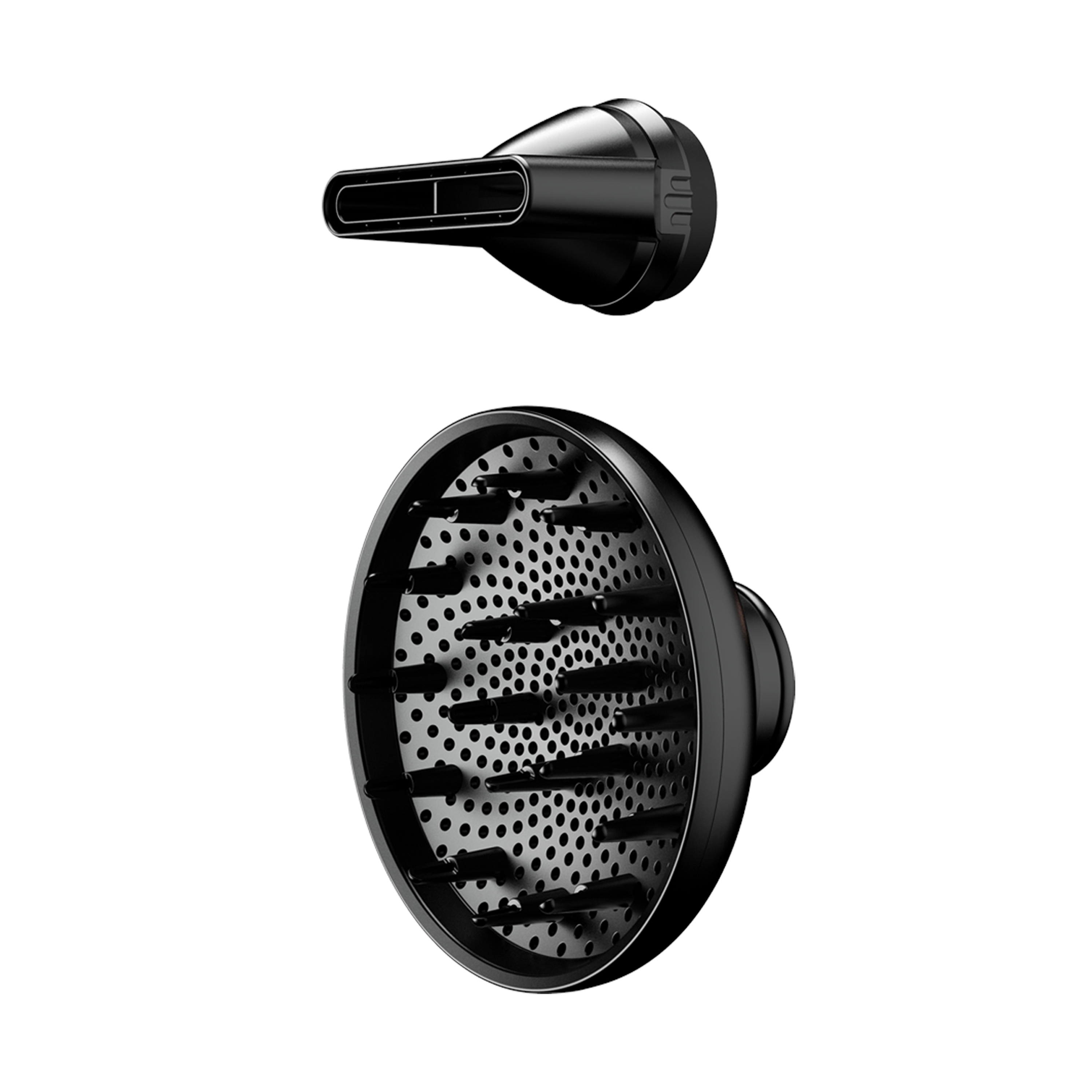 - Erittäin ohut 6 mm:n muotoilusuutin luo nopean ilmavirran, joka on täydellinen muotoiluun ja jota voidaan käyttää muotoiluharjan kanssa helpon ja runsaan muotoilun aikaansaamiseksi.