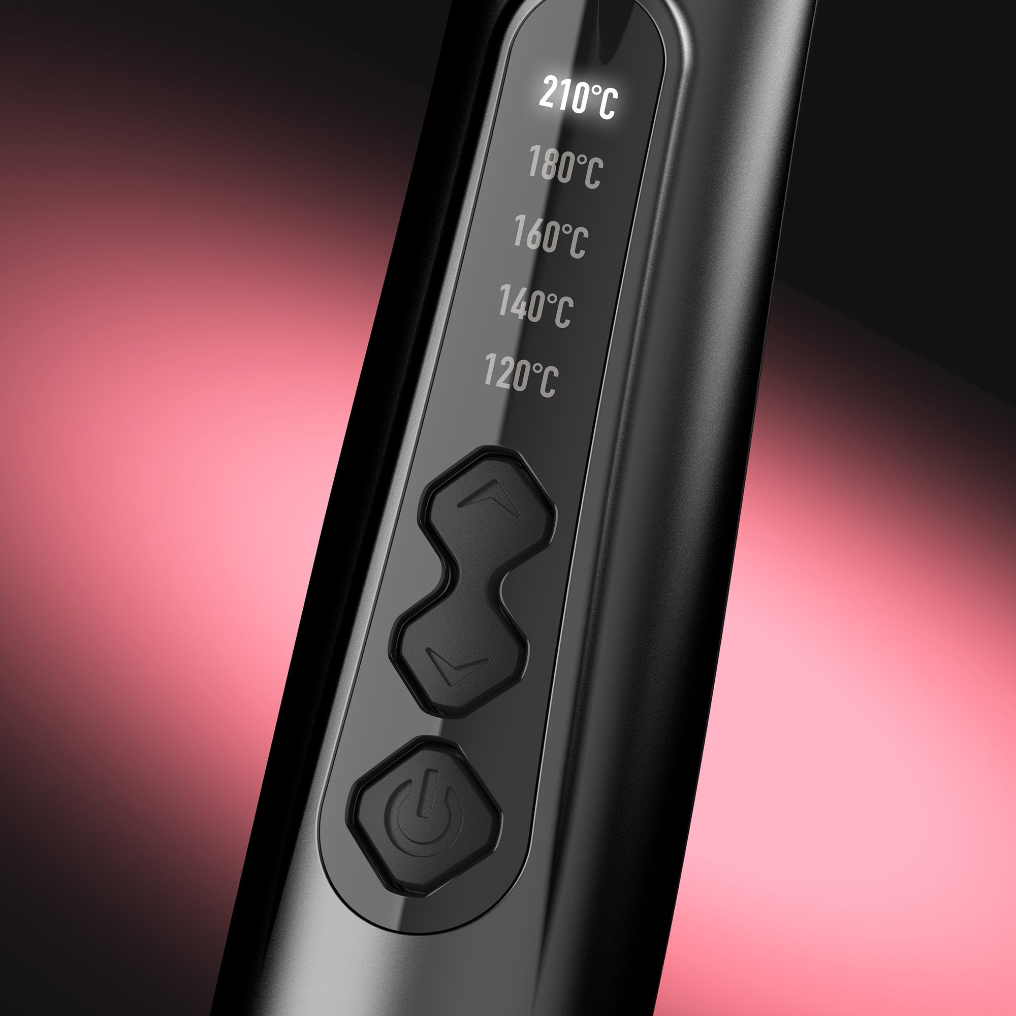 - Säädettävä lämpötila 120 °C–210 °C – valmis muotoiluun sekunneissa, sopii kaikille hiustyypeille