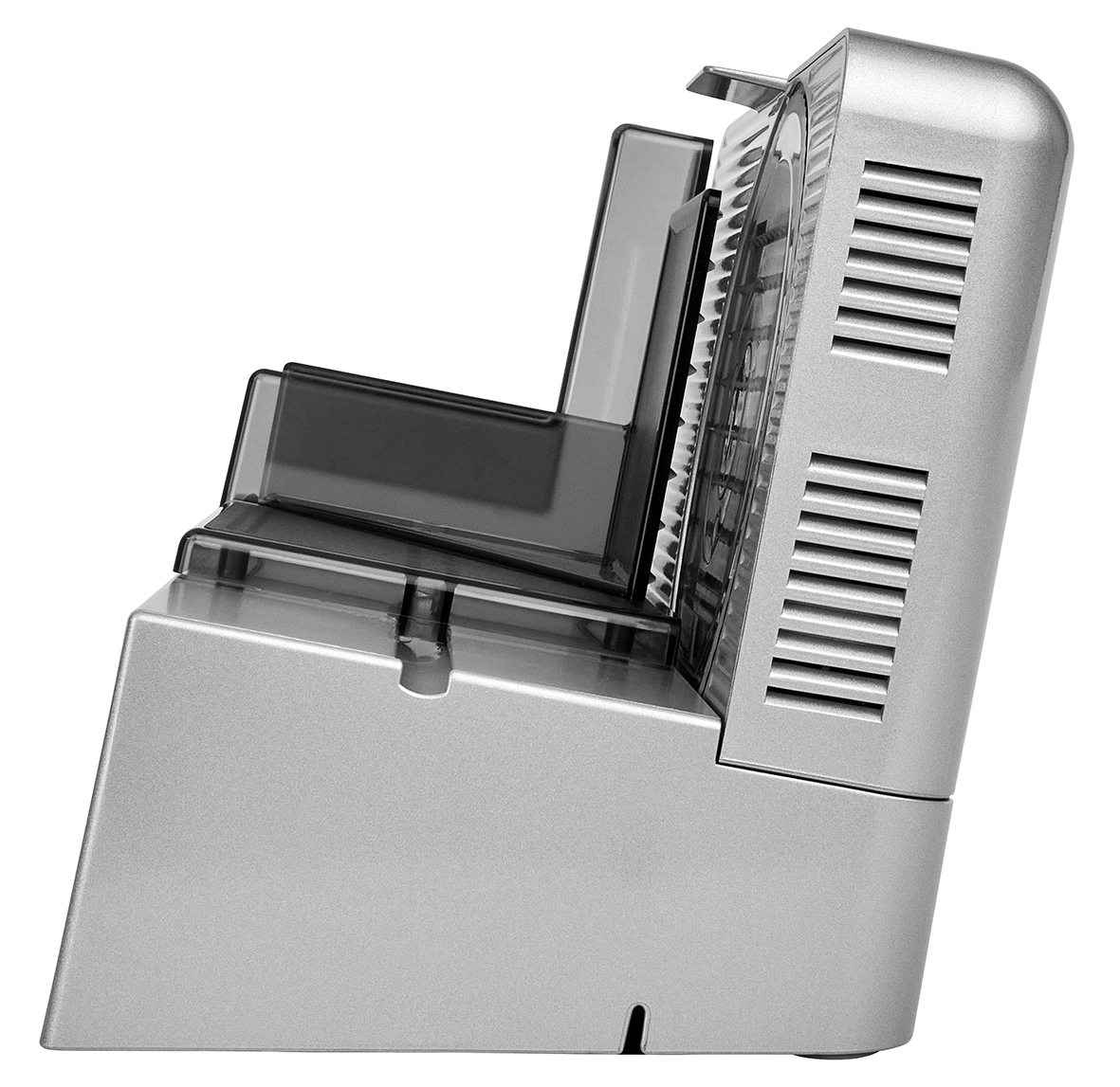 Viipalointikone, jossa on kaikki kallistetun ja vankan metallirakenteen edut. Kompakti ja kätevä, tämä pieni kone selviytyy helposti kaikenlaisista viipalointitehtävistä.