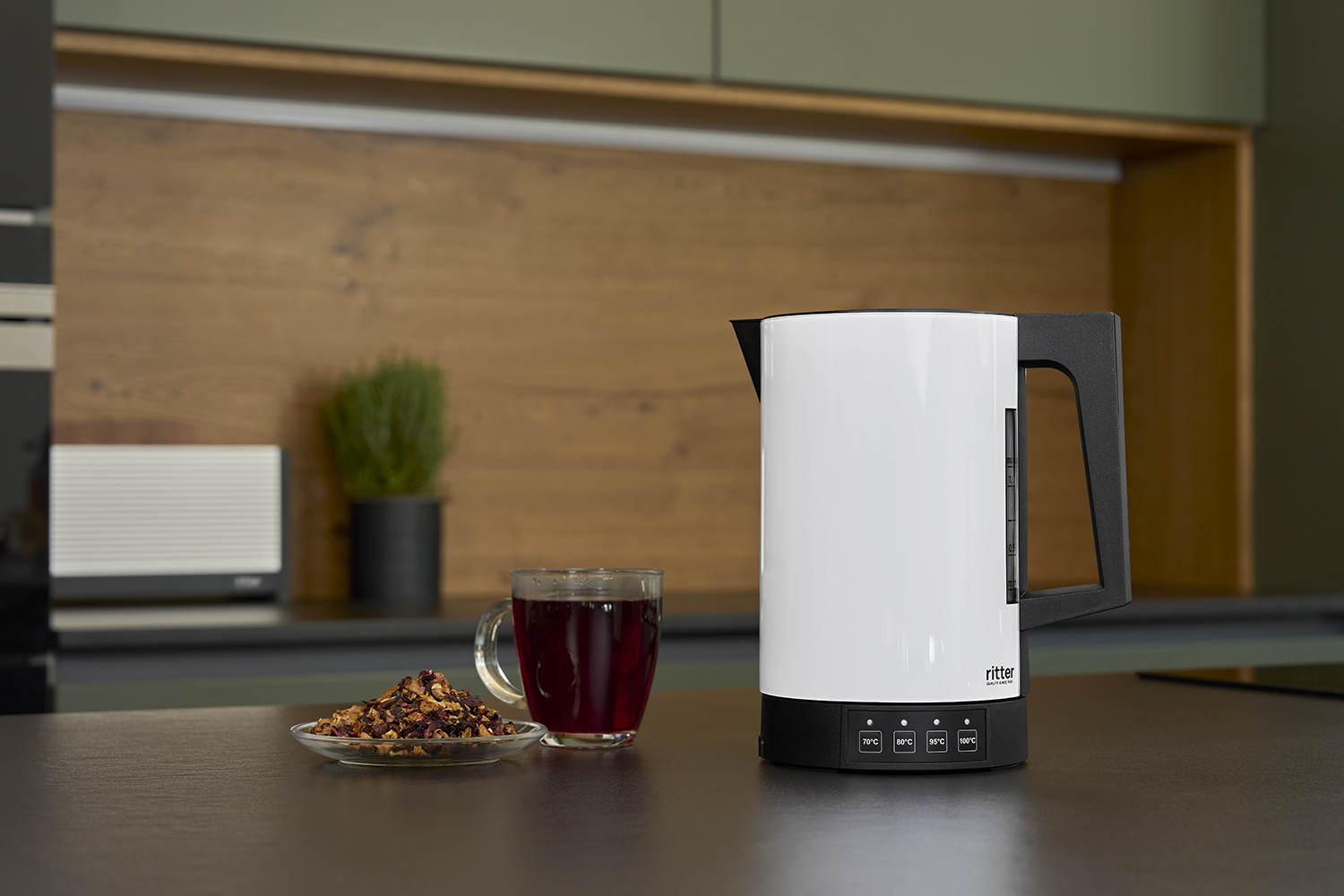 Vedenkeitin cavita5 on luokkansa paras toiminnallisissa yksityiskohdissa, ja se on palkittu erinomaisesta muotoilustaan. Se on myös voittanut arvostetun red dot product design award 2013 -palkinnon. Tämä palkinto on maailmanlaajuisesti tunnustettu laatumerkki erinomaisesta tuotesuunnittelusta. Sen sijaan, että vanhoja retrotyylejä käytettäisiin uudestaan, käyttäjäystävällisyys määrittelee tämän mallin ulkonäön. Näin ollen myös vedenkeittimessä on samoja ritter-tuotteille tyypillisiä elementtejä. Pelkistäminen olennaiseen. Pitkäikäiset materiaalit. Valmistus paikallisesti.